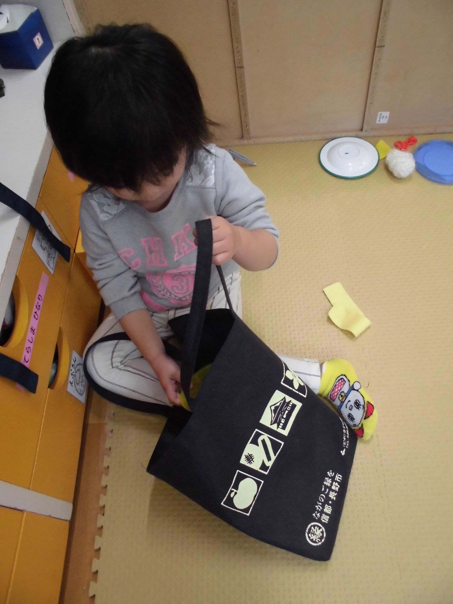 買い物に来ていた2歳児さんがなにやらバッグに手を入れてガサゴソ・・・