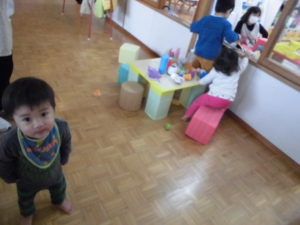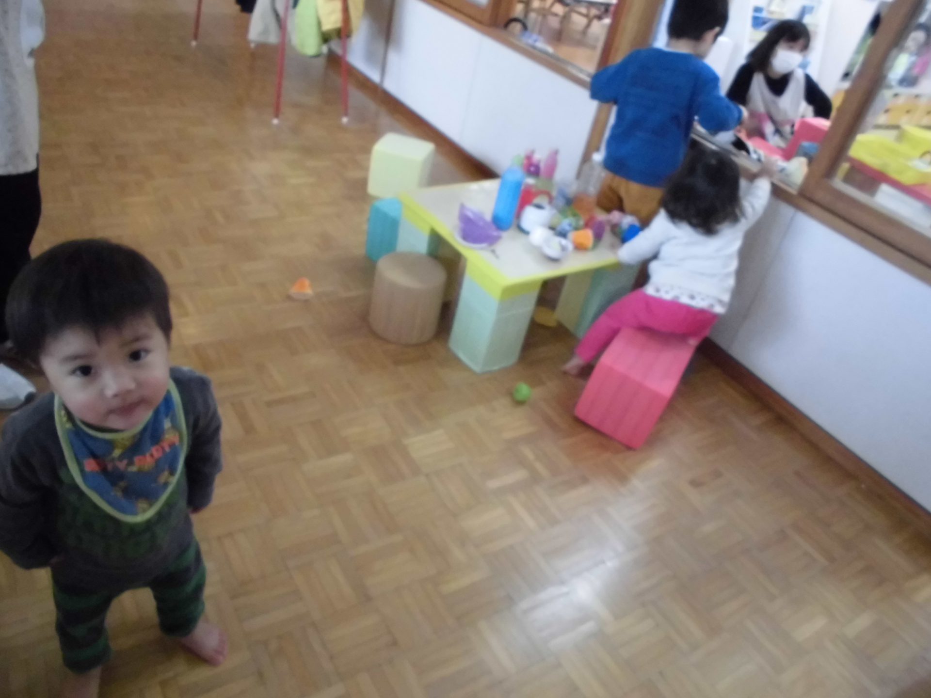 夢中で遊んでいましたよ♪「おいちー」「んま!」「ちょーだい」と、色々な言葉も聞こえてきました。