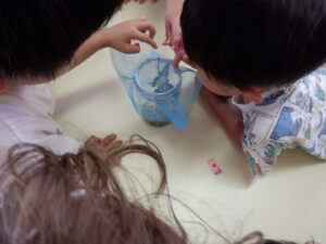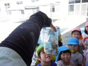 その様子を見ていた子ども達から、「狭い箱の中にいたらかわいそう。早く逃がしてあげないと」