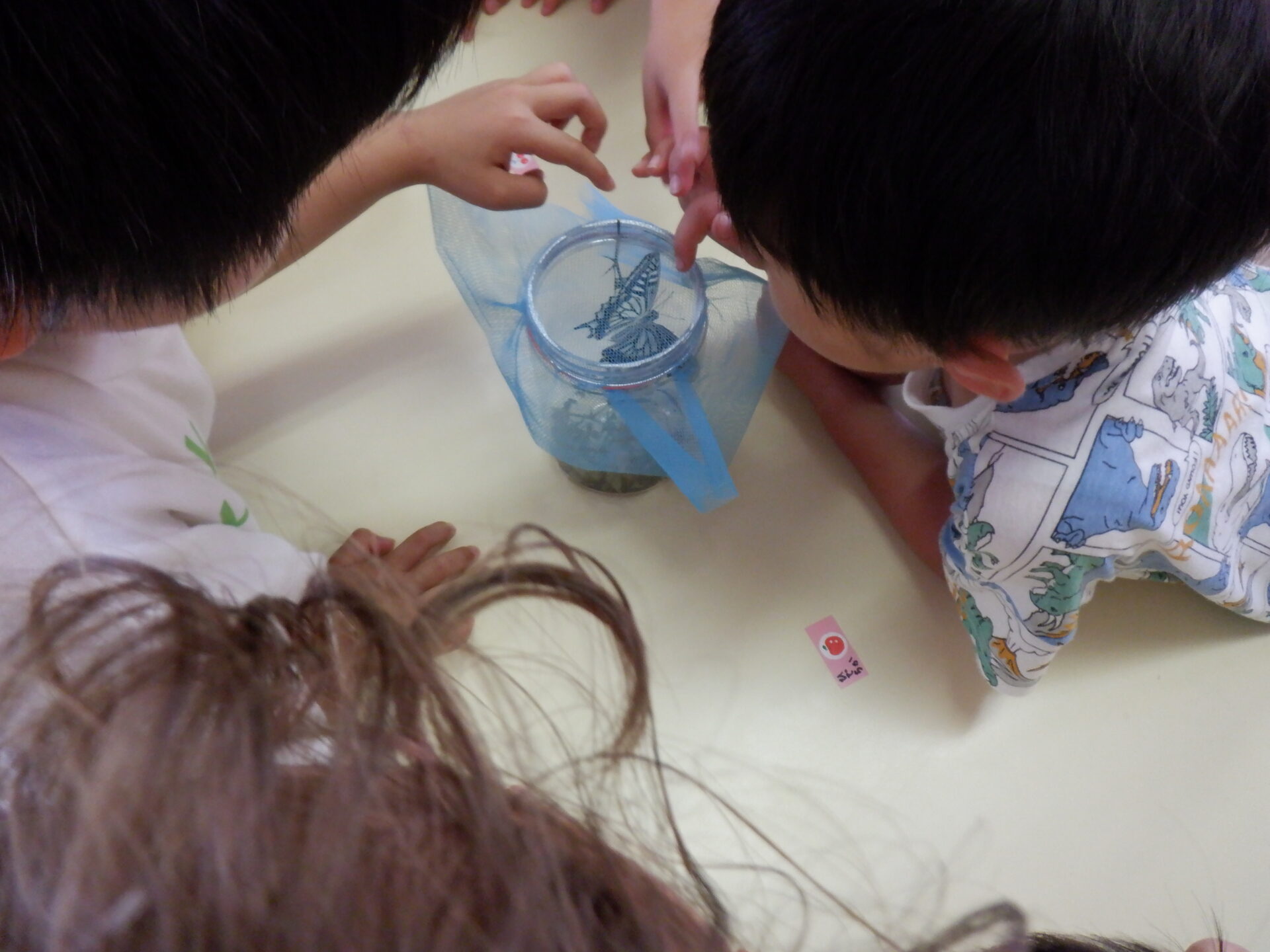園の近所の方から、青虫をもらったので飼うことにしました。