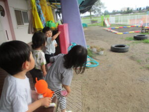蝶がとんだ後も「バイバーイ」と手を振り、お昼寝の後も「いるかなぁ」