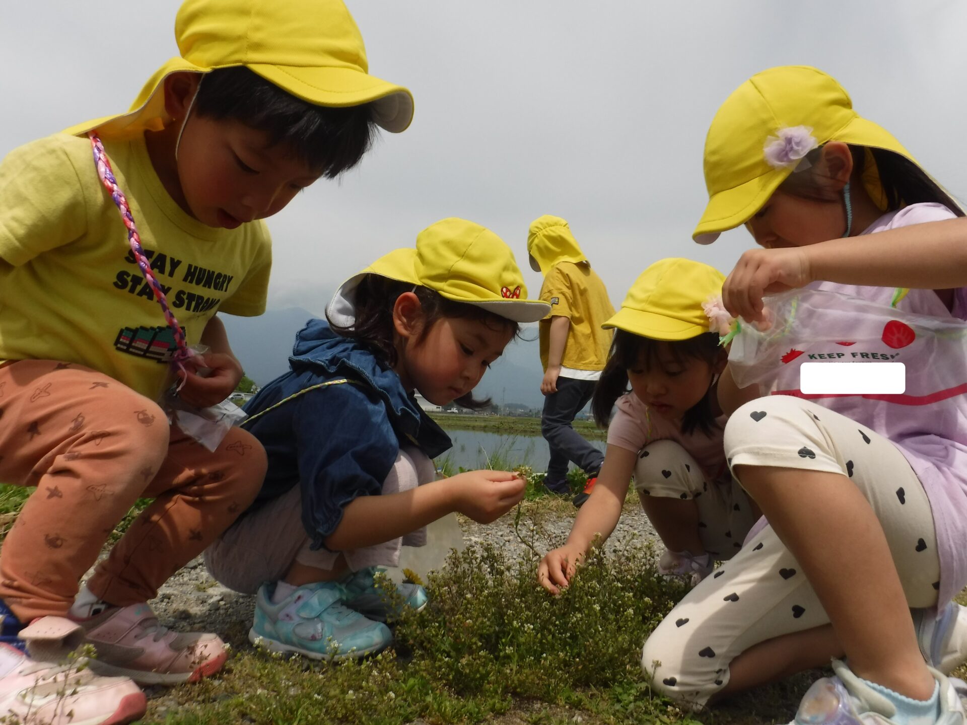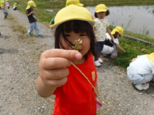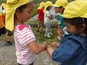 園の近くの田んぼ道は子どもたちにとって、すてきなものでいっぱいです!