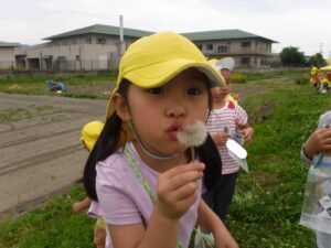 「わたげも見つけたよ!くるくる、ふーってするんだよ!」
