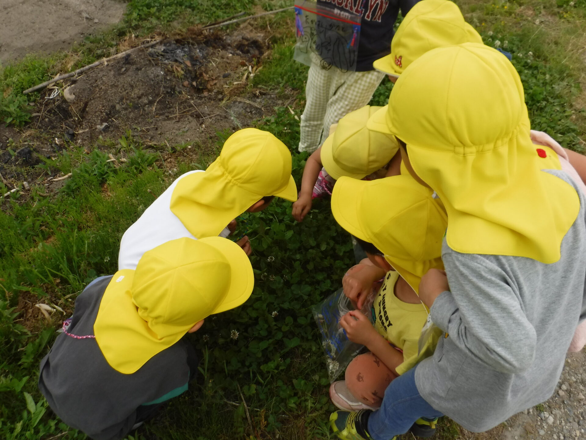 「みんなきて!草の中で何か動いた!」