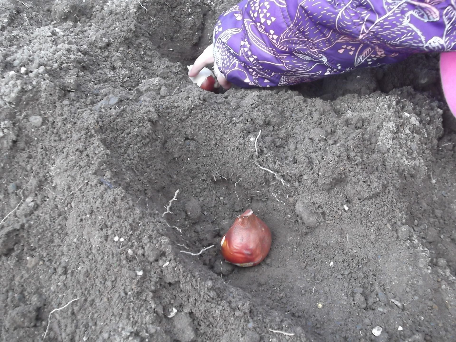 子ども達が春を楽しみに、球根植えをしている姿が見られました。