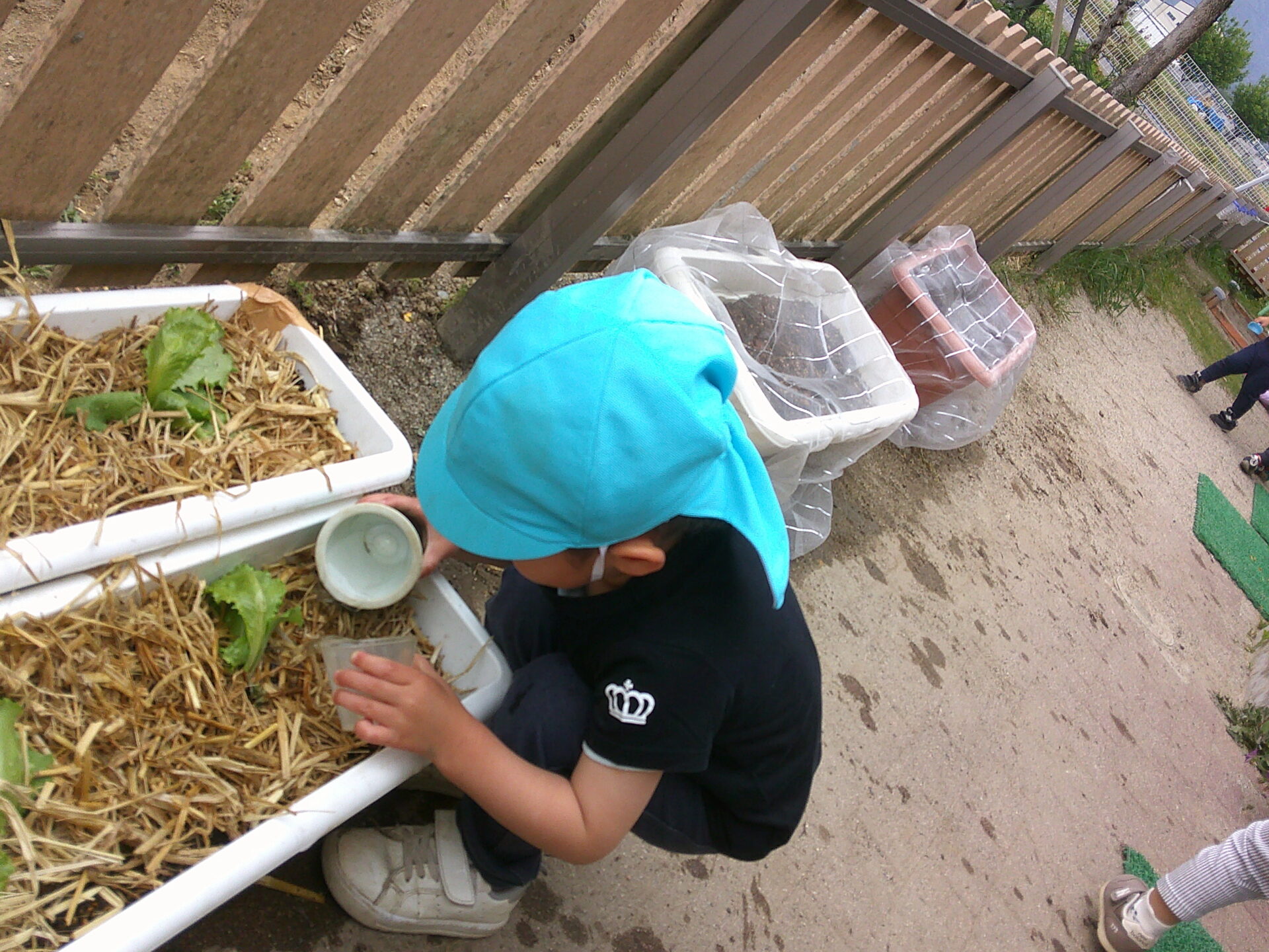 お水やりをしながら・・・「レタスはお水が好きなんだ。」