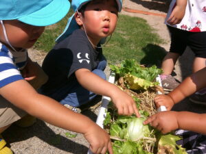 野菜の栽培を通して、植物の生長を不思議に思ったりおもしろく感じたり、食べることを楽しみにする気持ちが育ってほしいと思います。