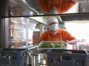 当日のメニューのマロニーサラダに採りたてのレタスを入れてもらいました。