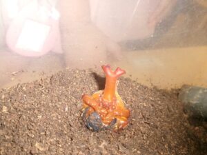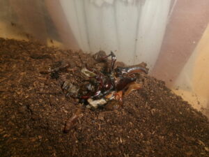結局、なぜか2匹とも半分土から出たまま、仰向けでサナギになりました。