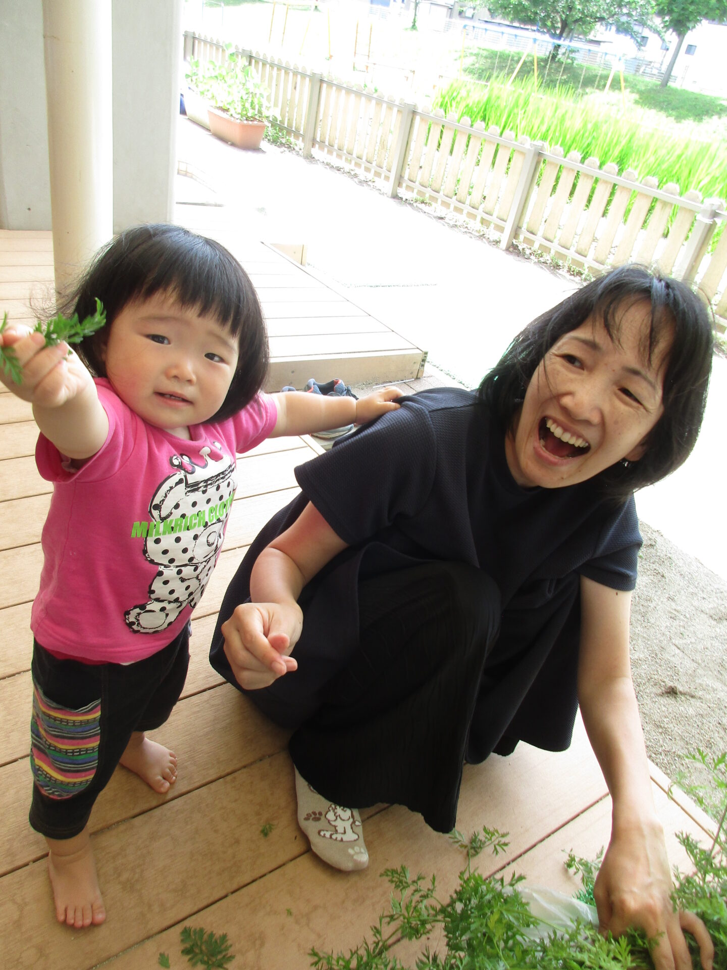 「おぉ〜」と親子で歓声が上がりにんじんの生長を楽しみました。