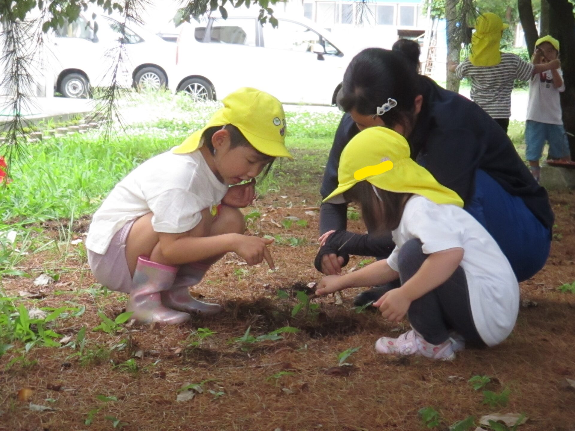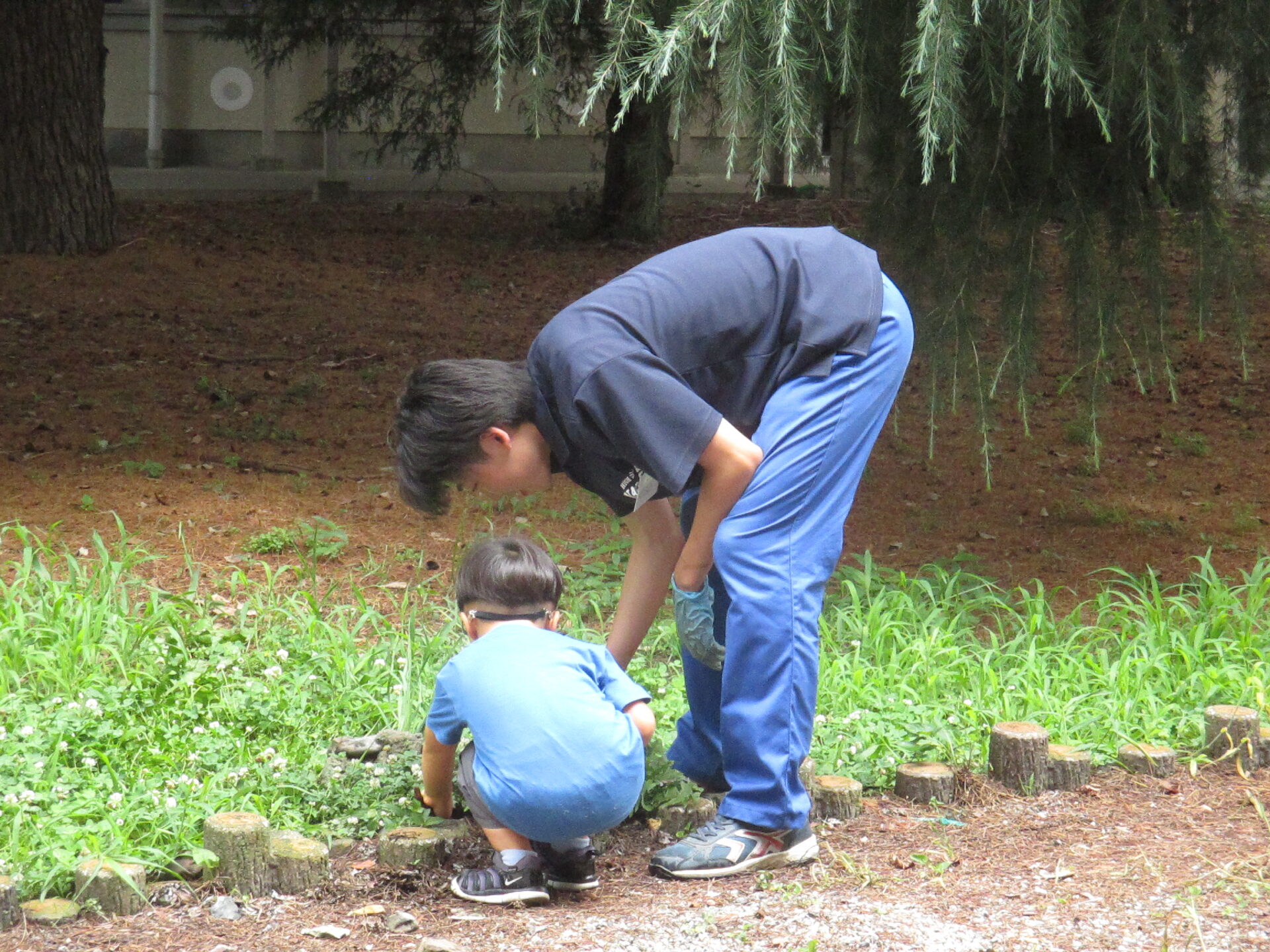 ダンゴ虫や幼虫、カエルもみつけて嬉しそうでした。
