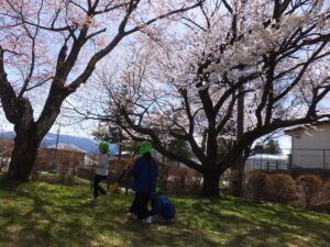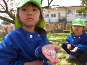 あ!桜の花びらいっぱい落ちてる!と嬉しそうに拾う子どもたち。