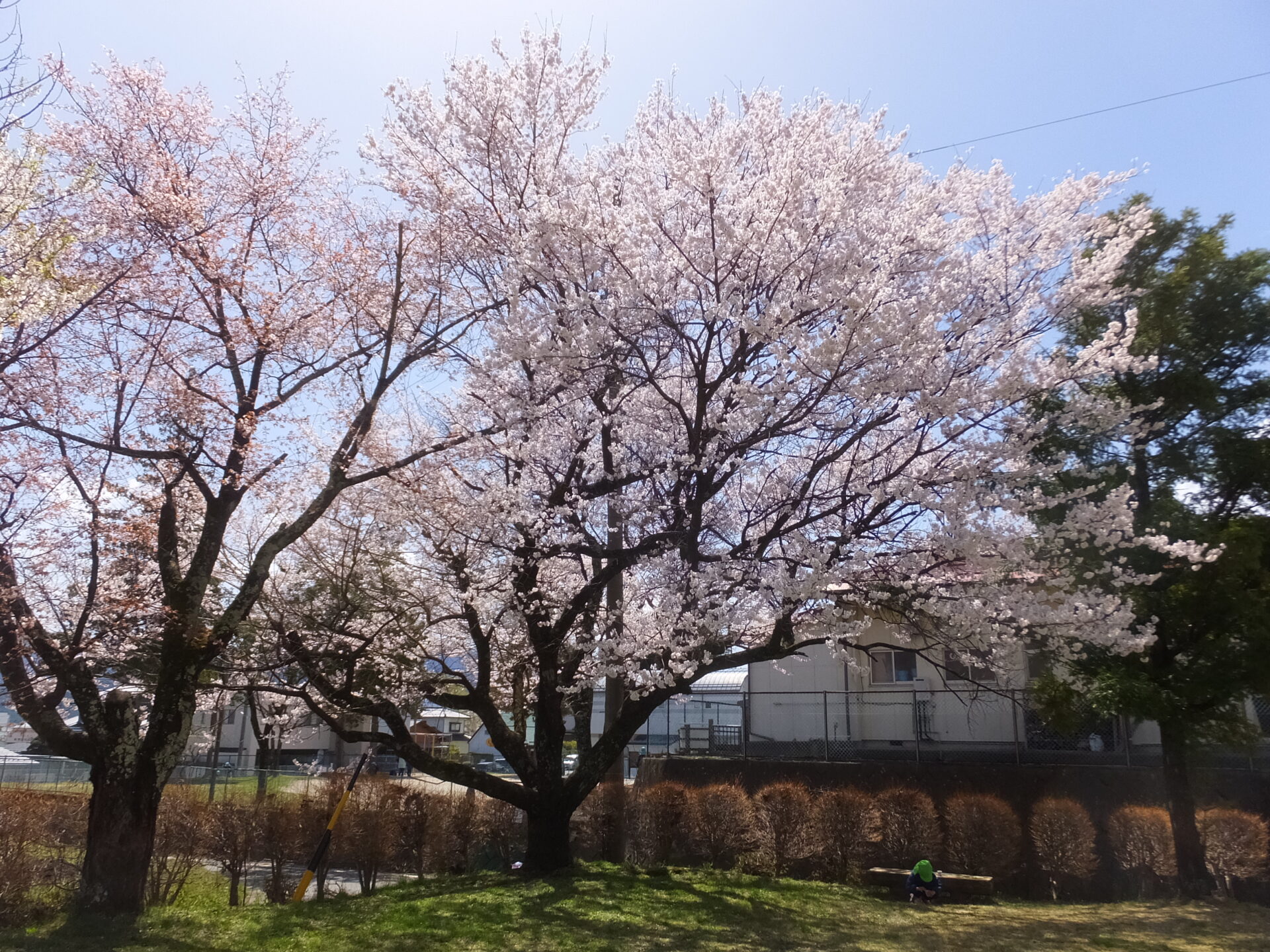 保育園の隣にある栄町公園の桜が満開に。クラスのみんなでお花見に出掛けると前日の雨で花びらが少し落ち始めて拾い集める子、風で花びらが舞う中、喜んで走り回り、まわる子、それぞれが思い思いのあそびを楽しむ。