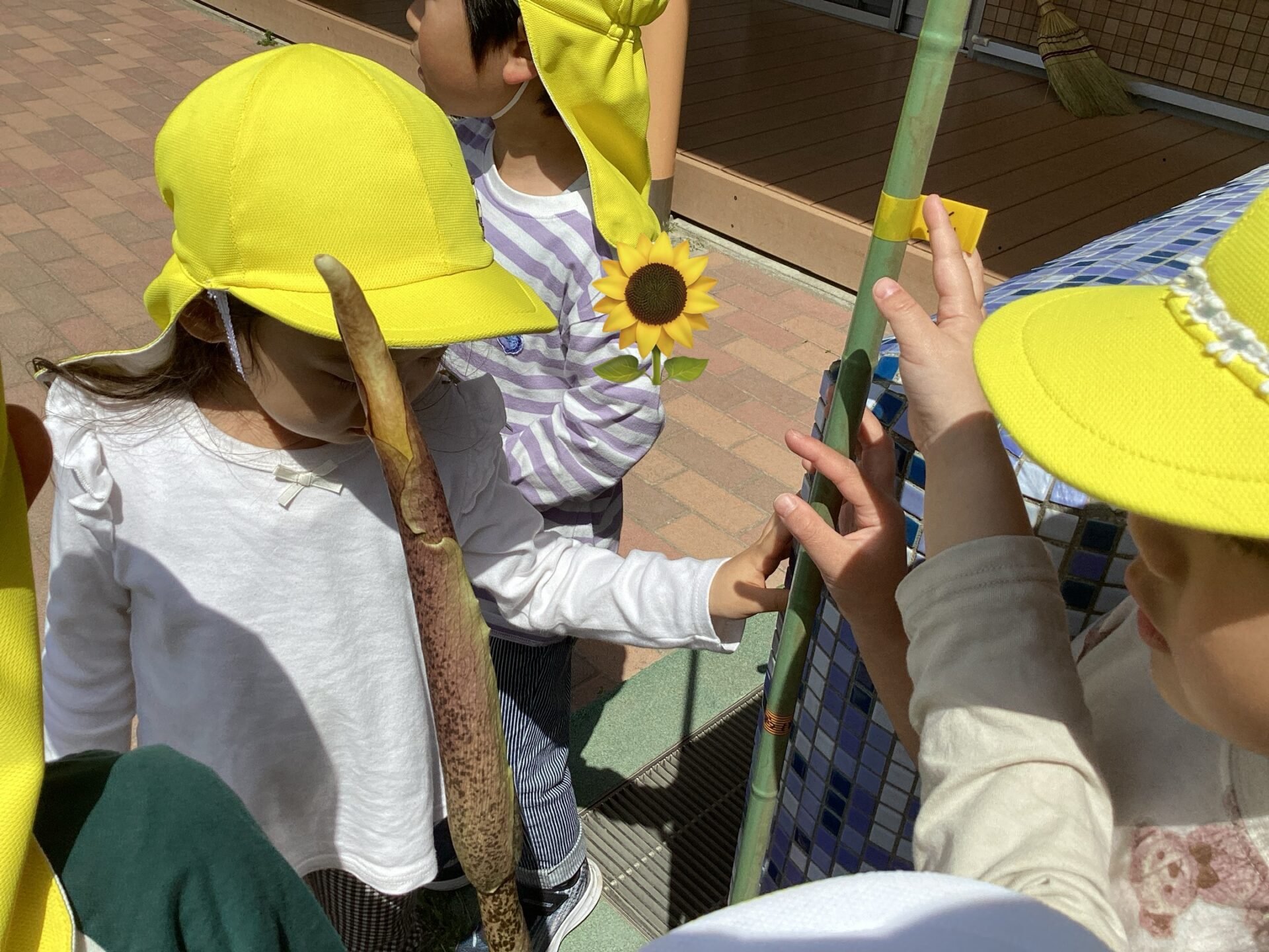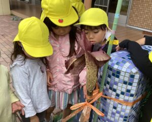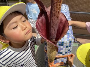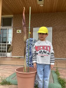 生長スピードが早く、毎日姿が変わっていくこんにゃくいもが不思議で、子ども達と「生きてるんだねえ」と感じる日々でした。