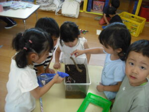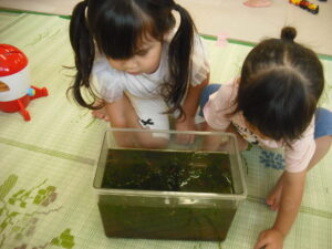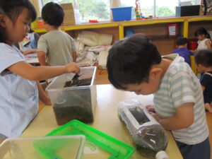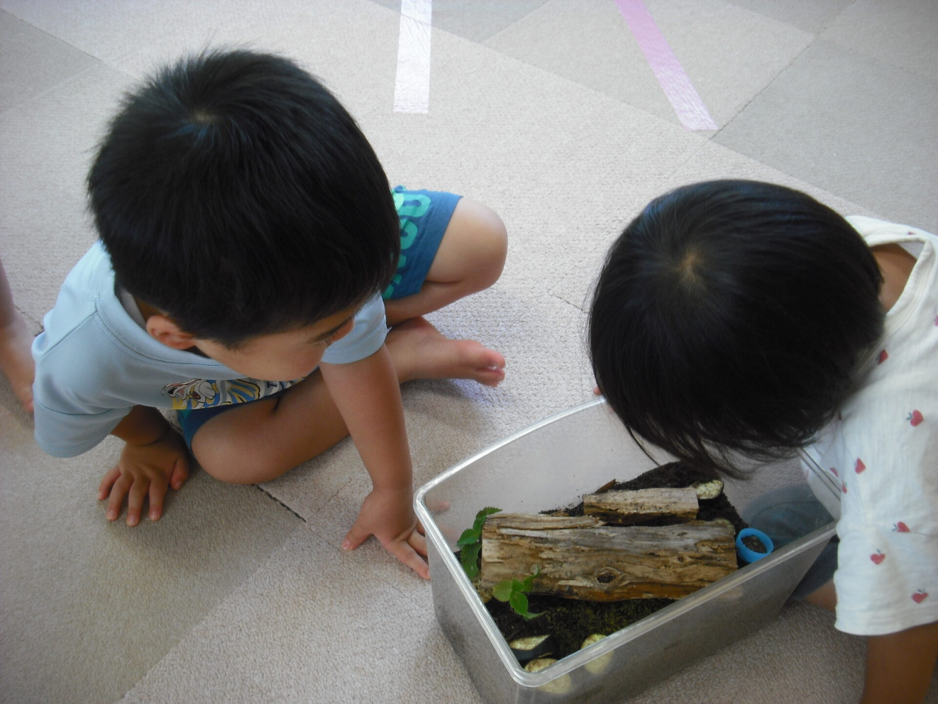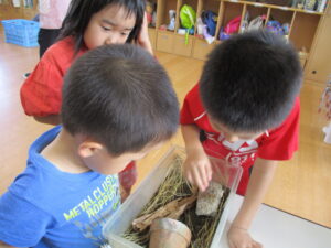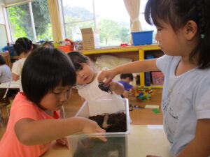・自然豊かな共和保育園。各クラスには様々な生き物がいて、観察ツアーを活動の中に取り入れました。