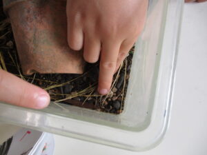 カブトムシやドジョウがいて、ちょうどお世話の時間。