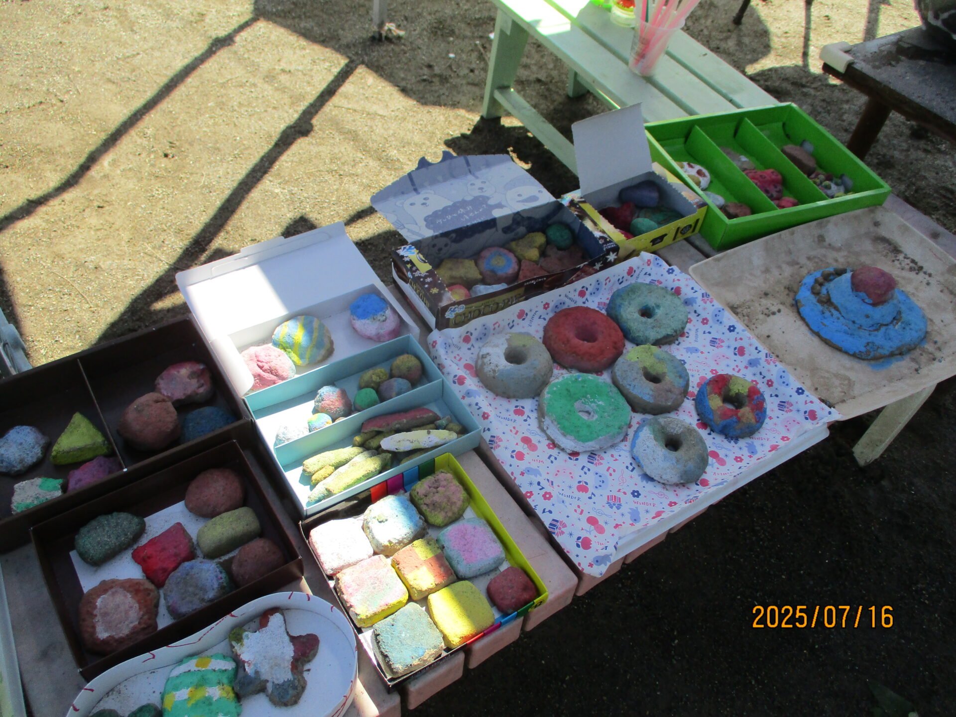 泥・水・絵の具だけでこんなにも素敵なお菓子がたくさん出来上がりました✨