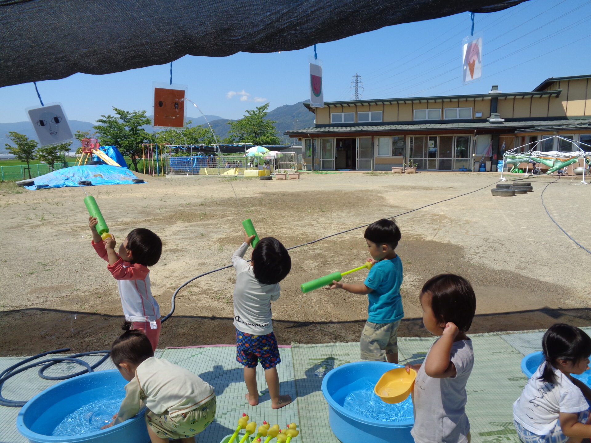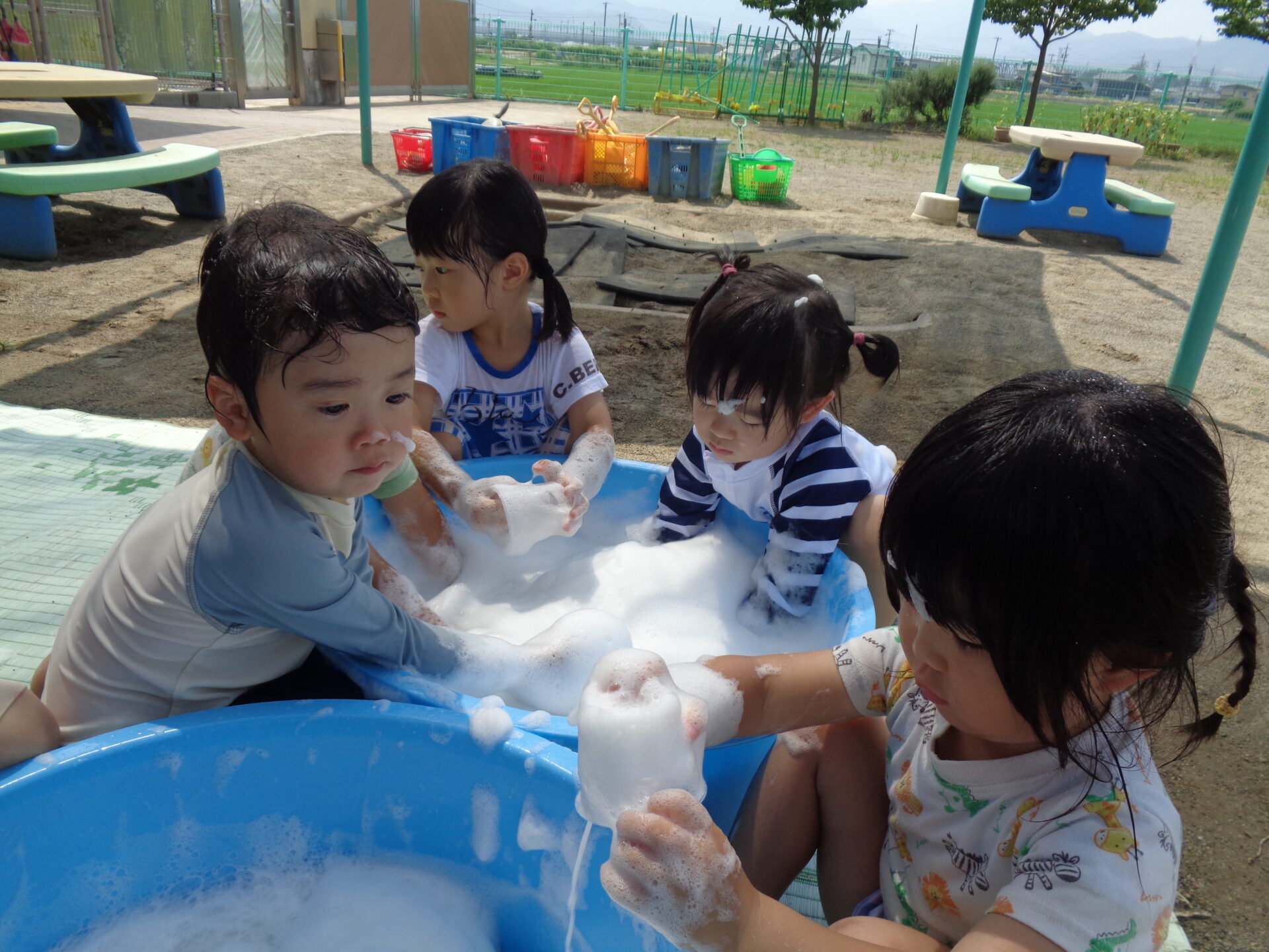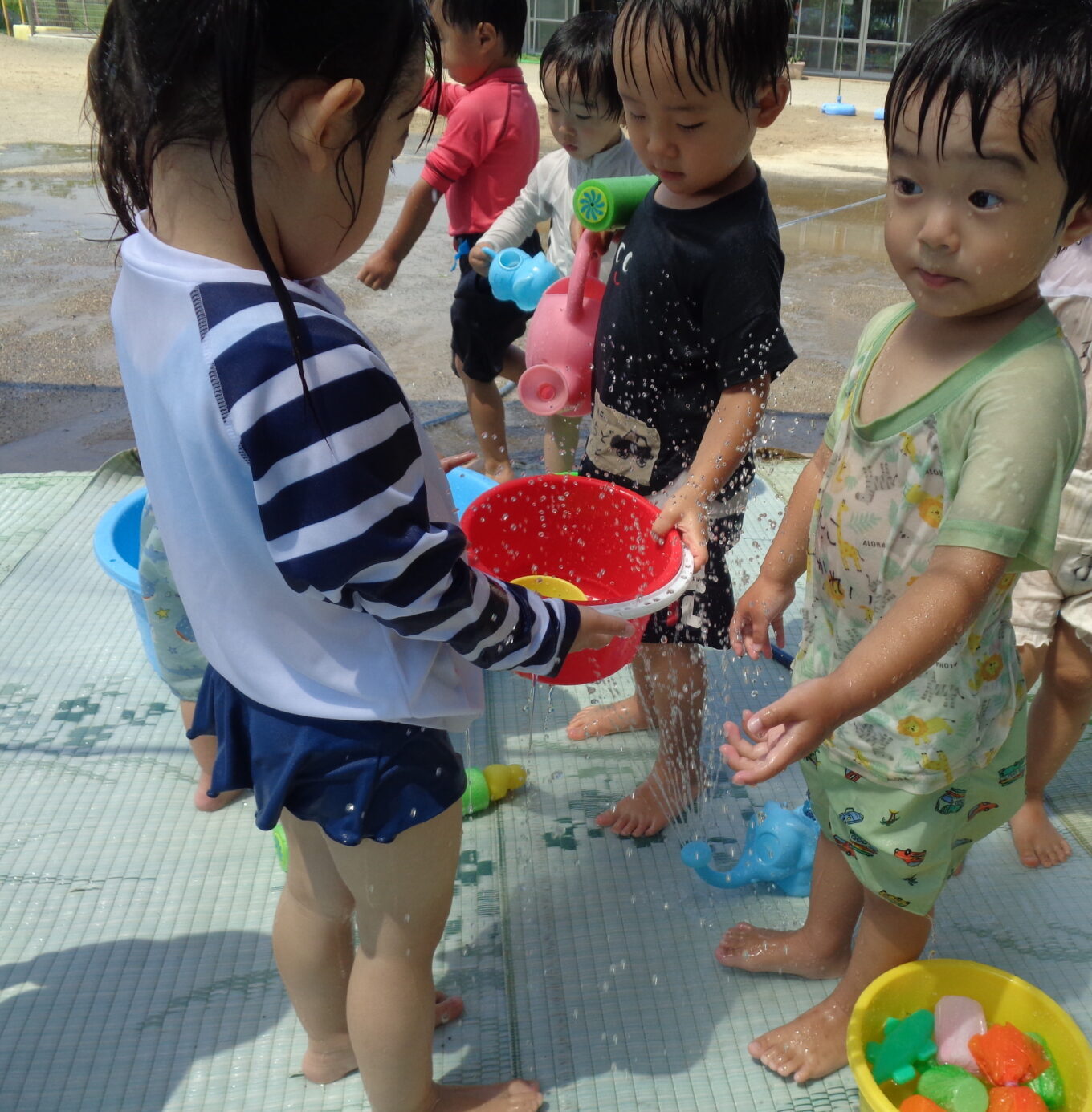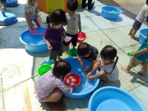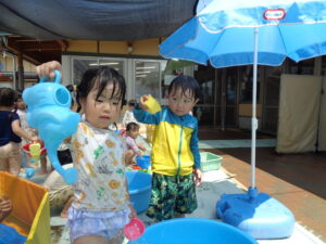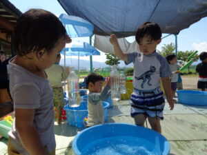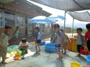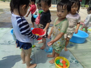 これからも、水の感触や気持ちよさを十分に味わいながらダイナミックに楽しめる遊びを工夫していきたいと思います。