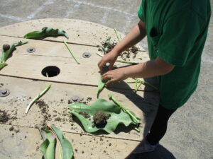 「うまく包めない。どうすればいい?」みんなで考えましたがいいものを見つけられず、苔を提案してみました。