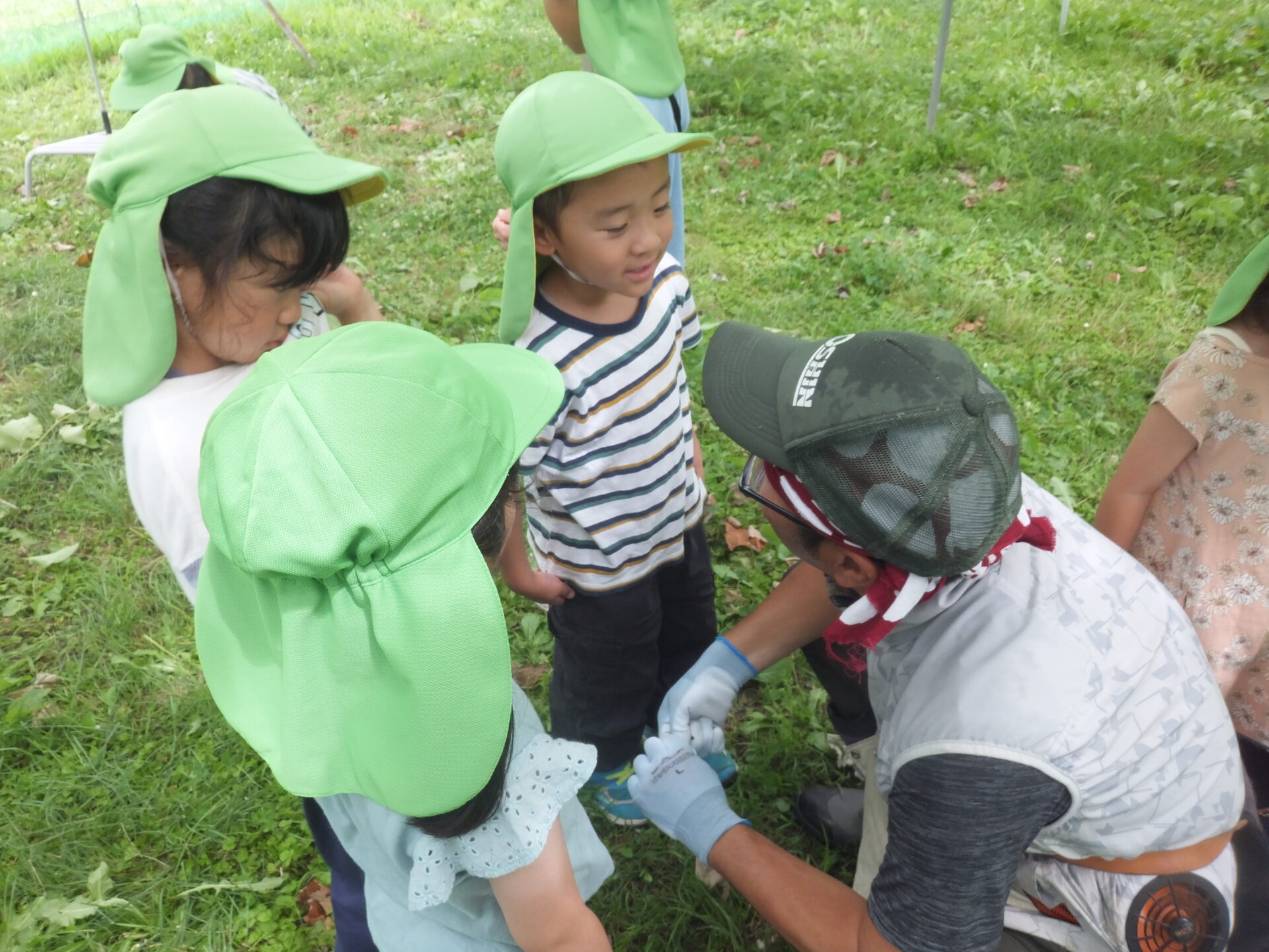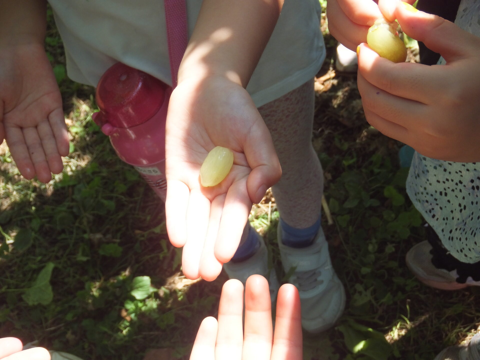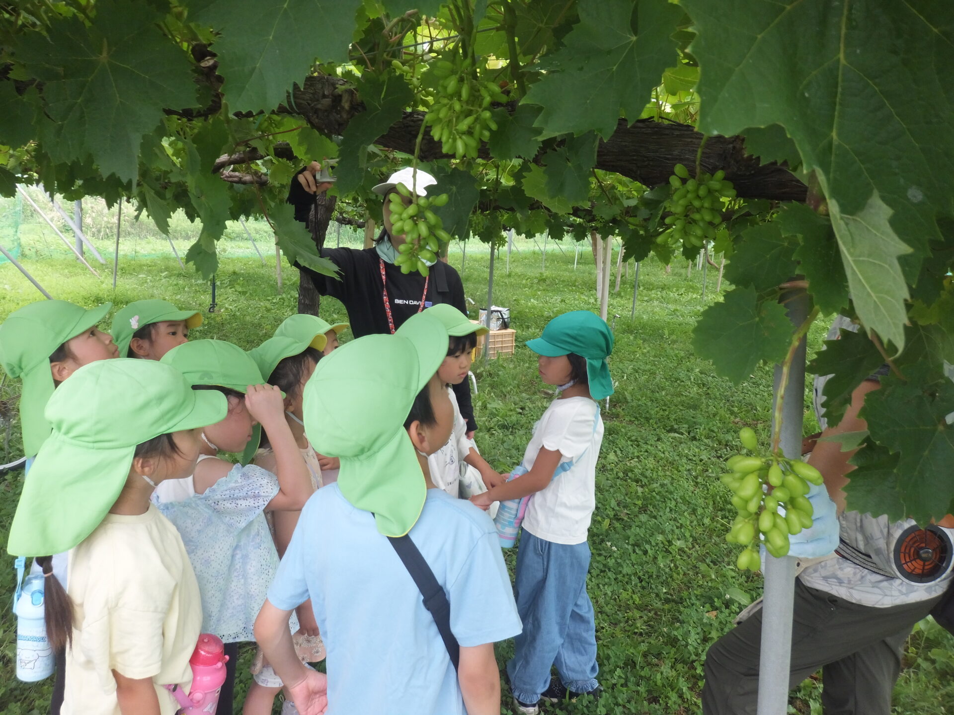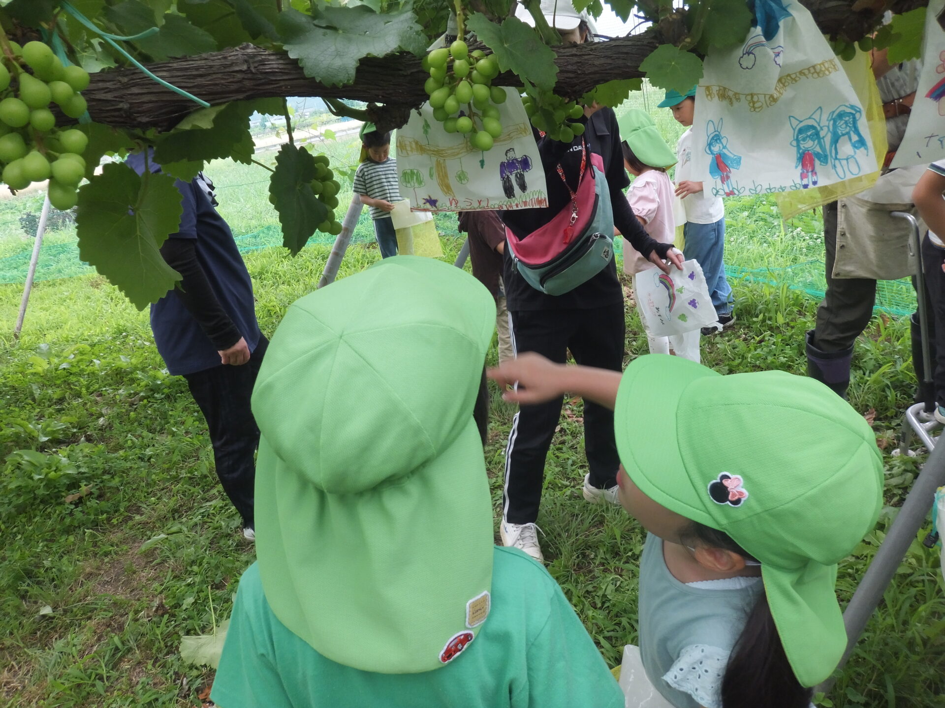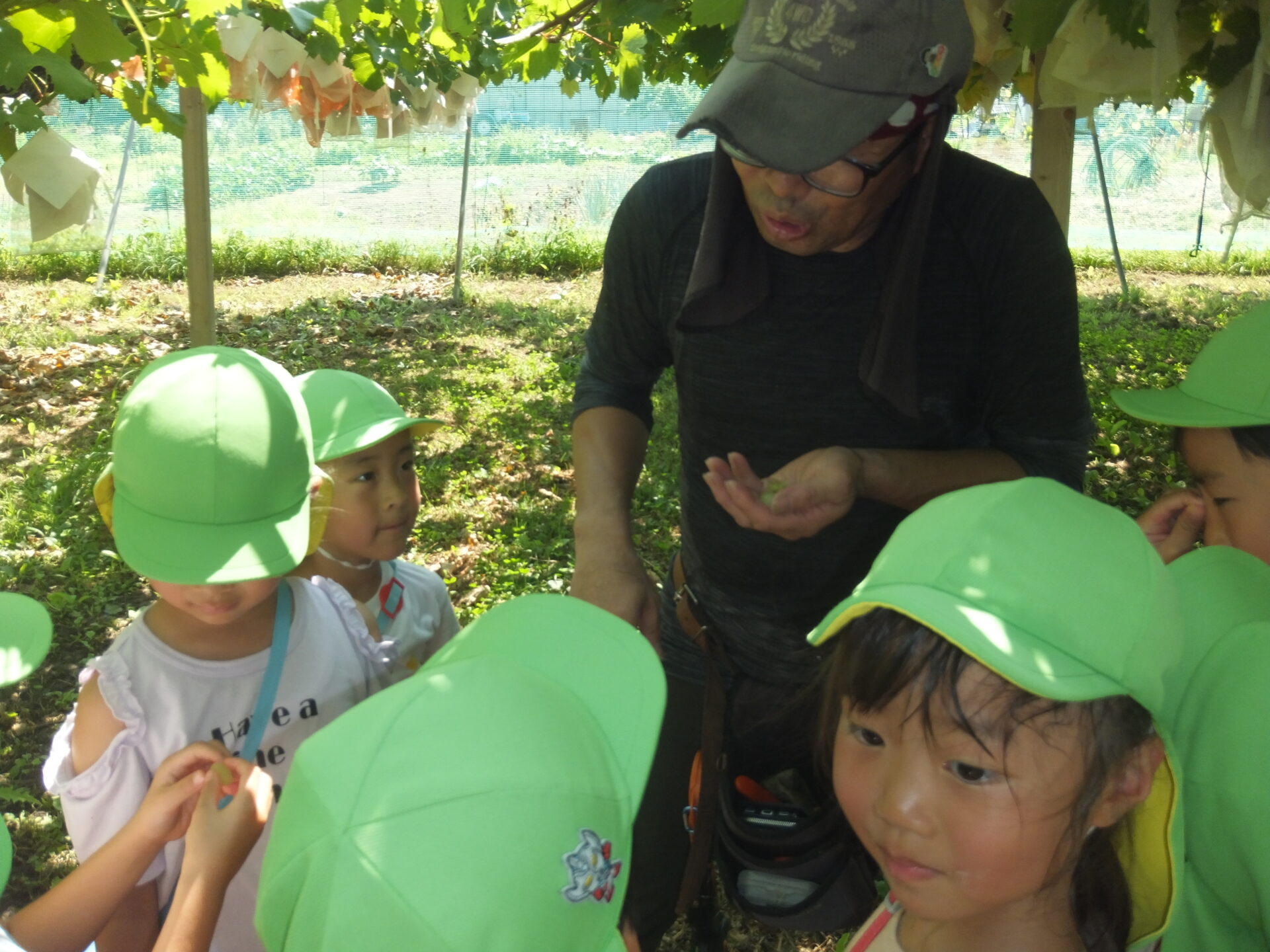 特別に、ぶどうを触らせてもらいました。「ぷにぷにする!」この前触ったぶどうとの感触の違いに気づく子がいました。