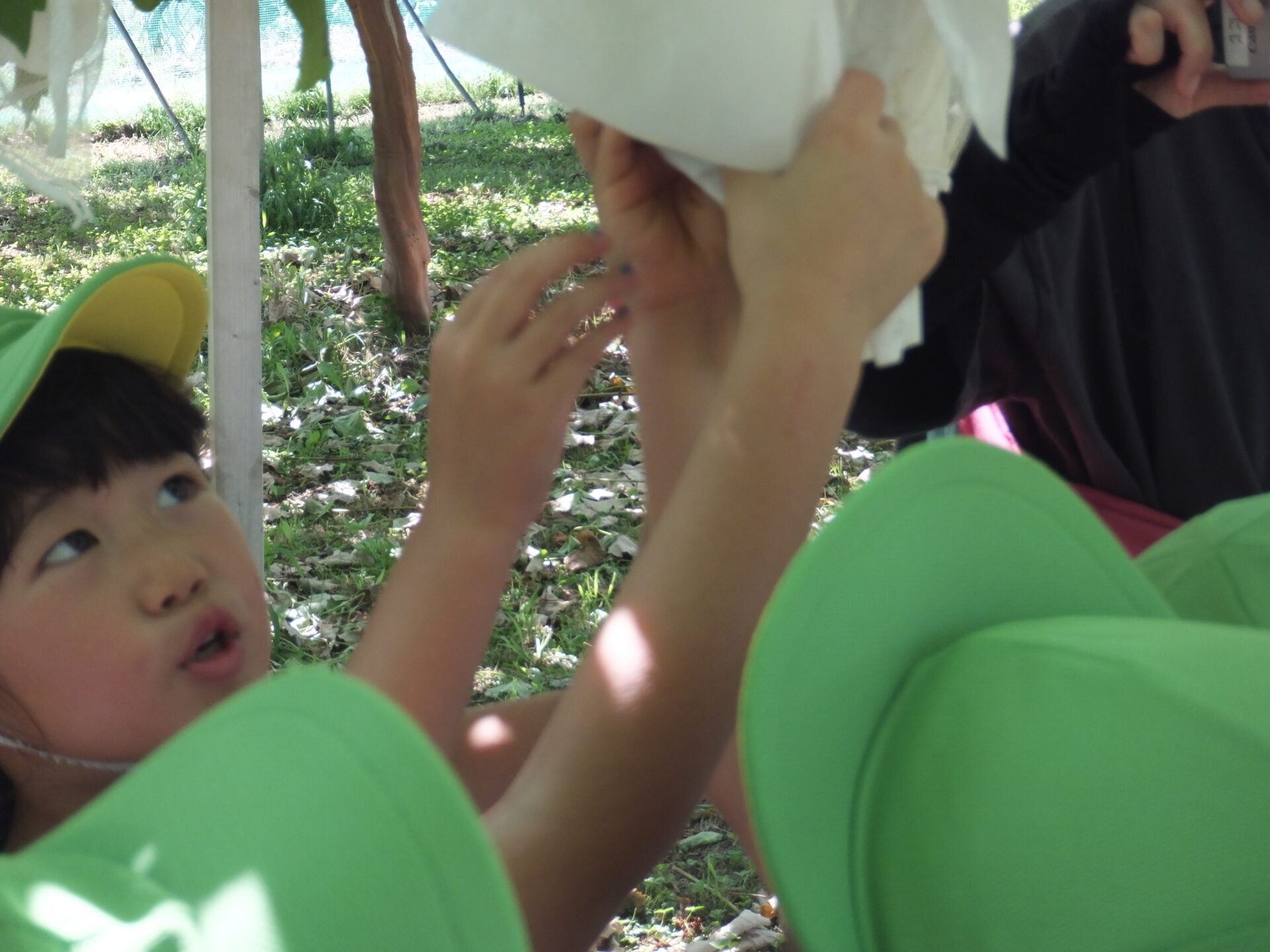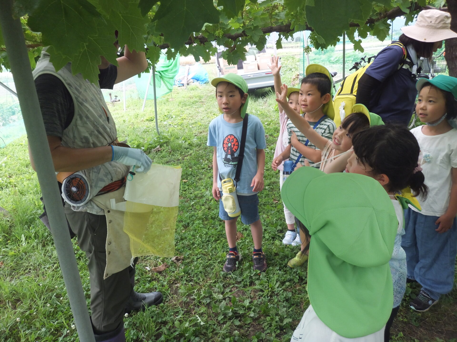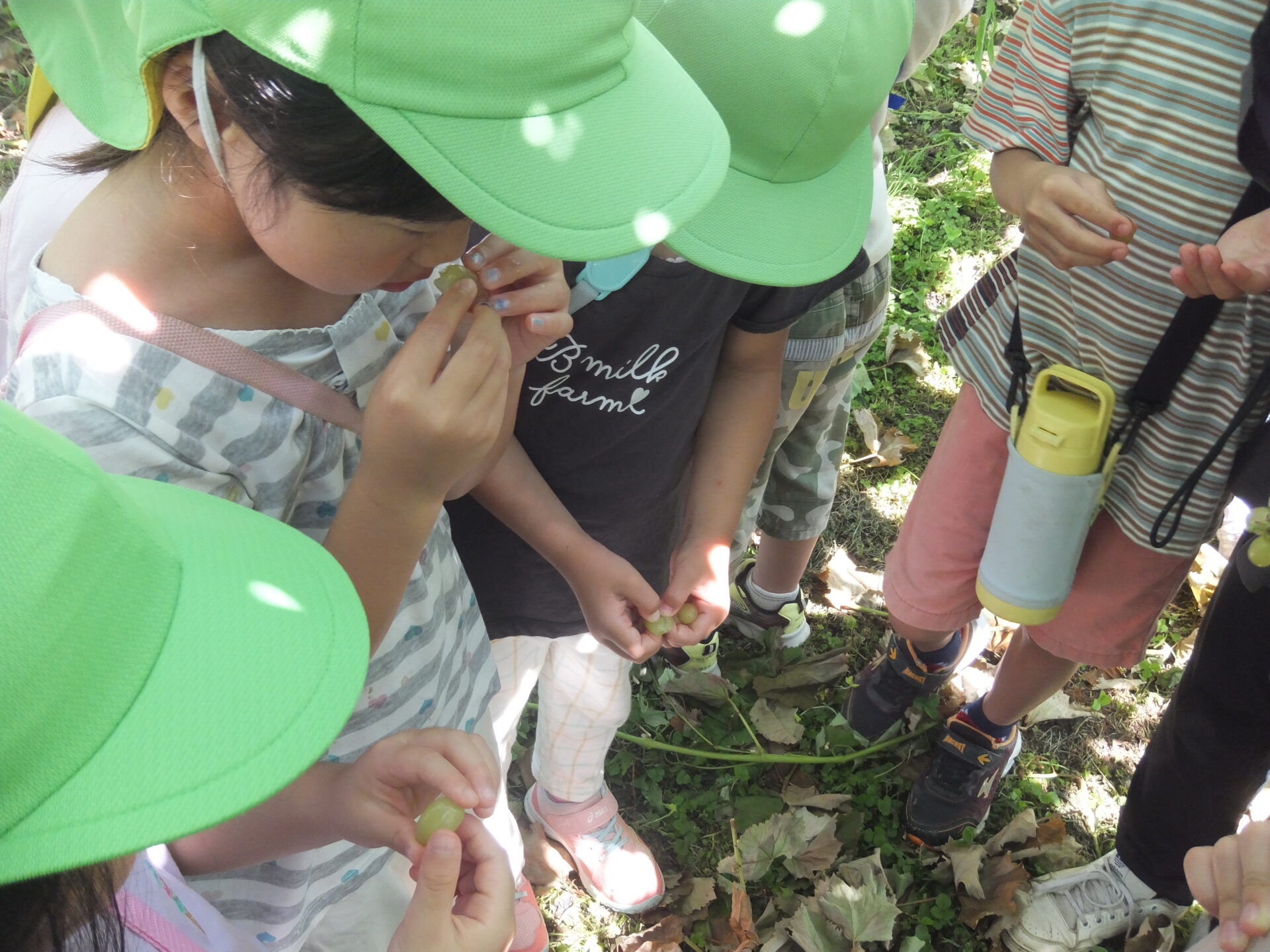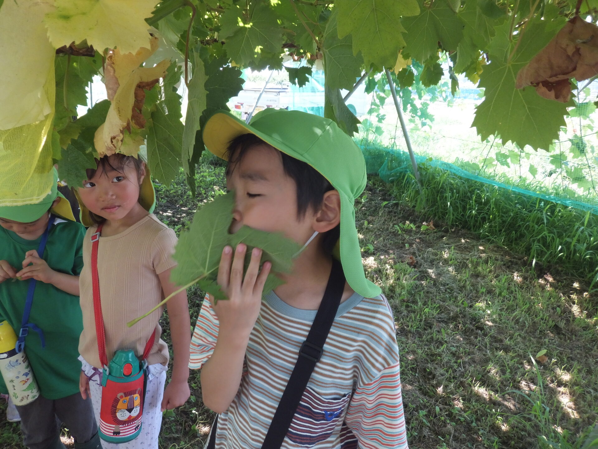 今回も、目で見て楽しみ、香りを楽しみ、感触でぶどうの生長を感じ、「こうやったらどうなるだろう?」と子ども達で試しながら興味を深めていました。