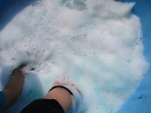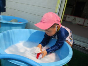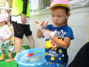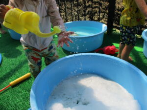 子ども達も一緒手をバシャバシャさせて泡を作ってくれます。