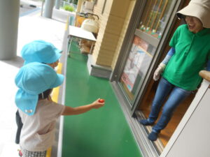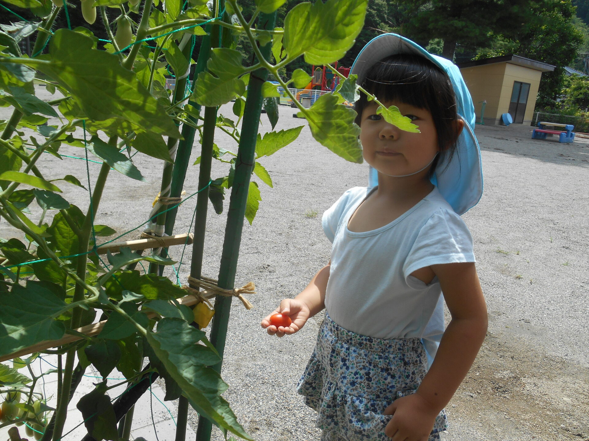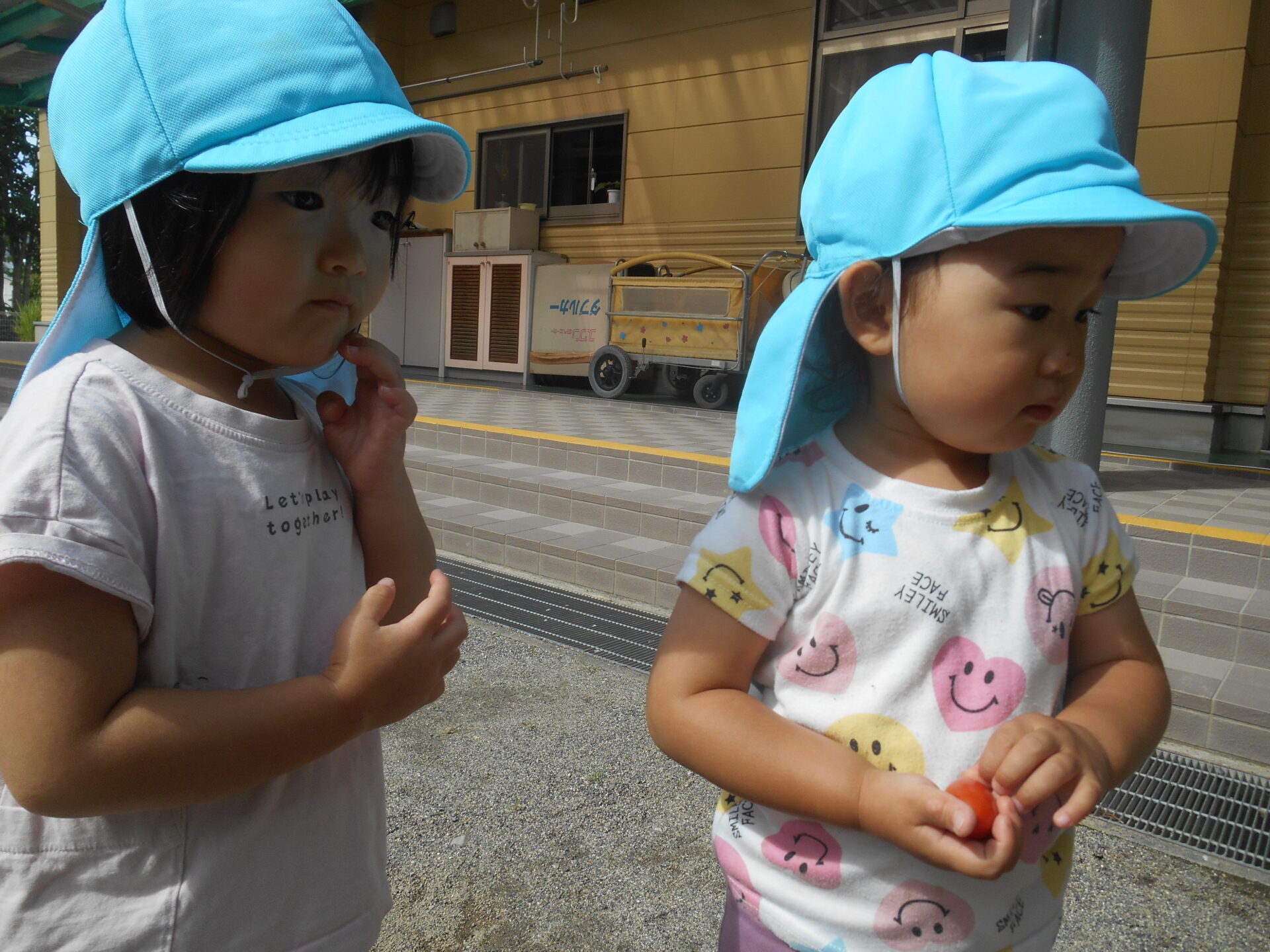 楽しみにしていたトマトをようやく収穫することができ、、待ちきれなかった子どもたちがまた可愛く、ほっこりする場面でした。