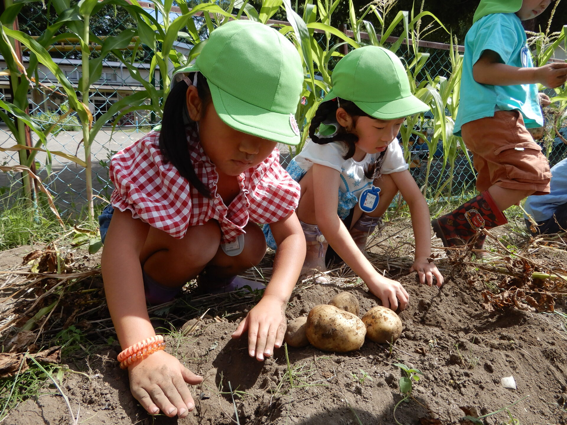 ・「下の方にあるよ」「もっと掘ってみよう」と土の中に根が伸び、じゃがいもが実ることを実感した様子の子ども達でした‼︎