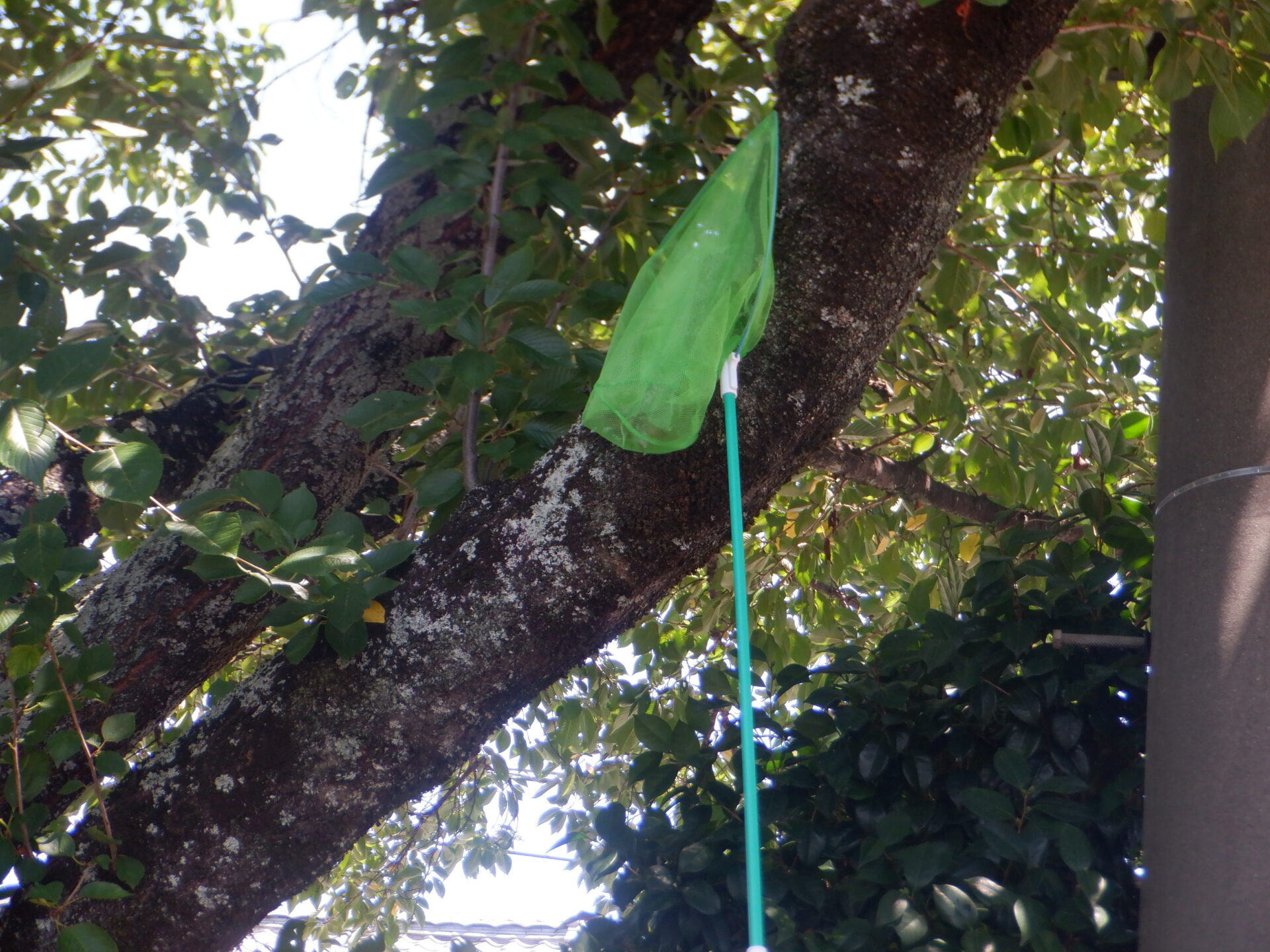 静かに木の上を見ているとセミを発見。そっと網をかぶせると意外と簡単に取ることができました。