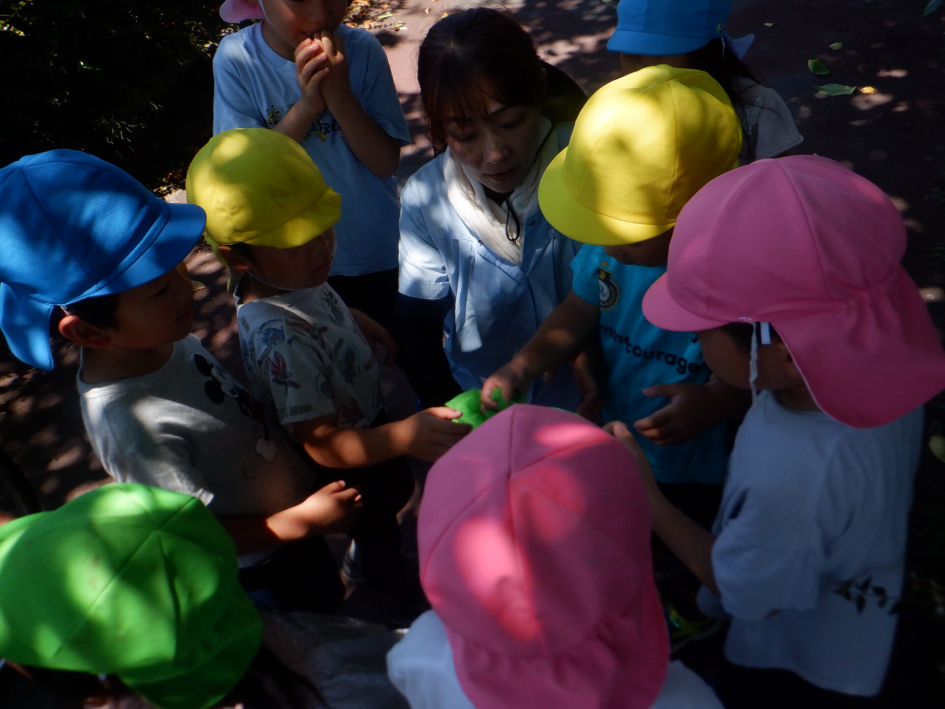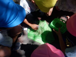 「見たい、見たい」と虫かごの周りに皆集まります。