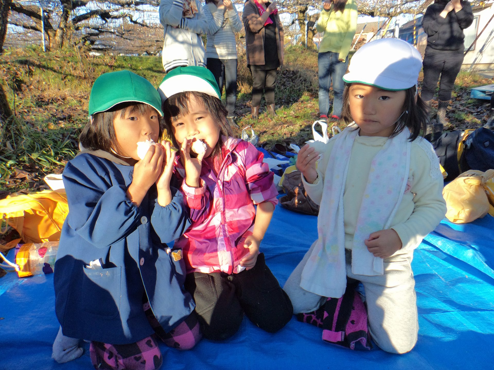 炊き立て&握りたてのおにぎりが到着!みんなでその場で味わいました。塩で味をつけただけのおにぎりでしたが、自分たちで育てたお米の味は格別でした。おかわりもあっという間に完食しました。