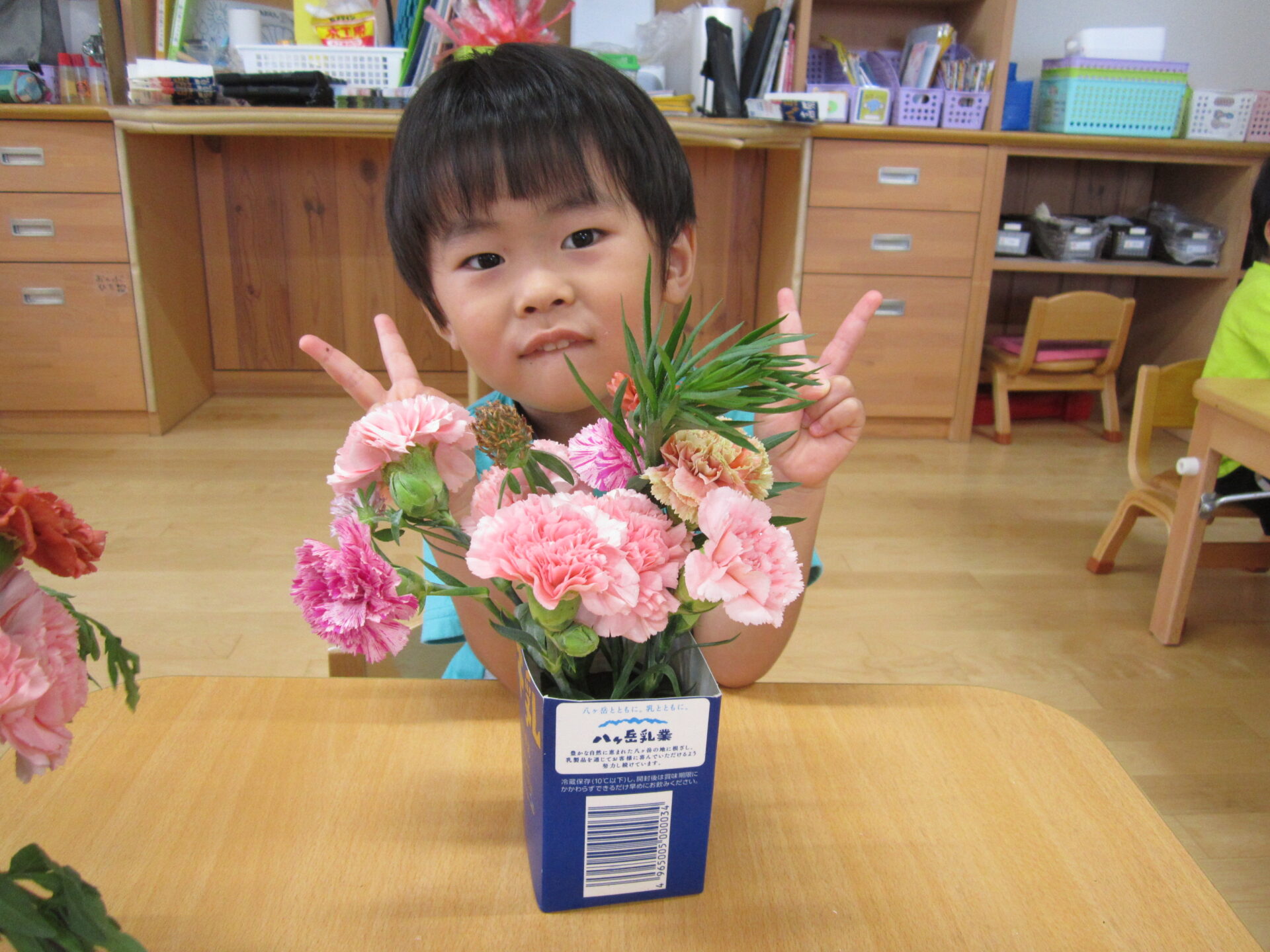 「すご−く楽しかったよ」 「きれいでしょ!」 みんな自分のお花が完成するとうれしそうに見せてくれます。
