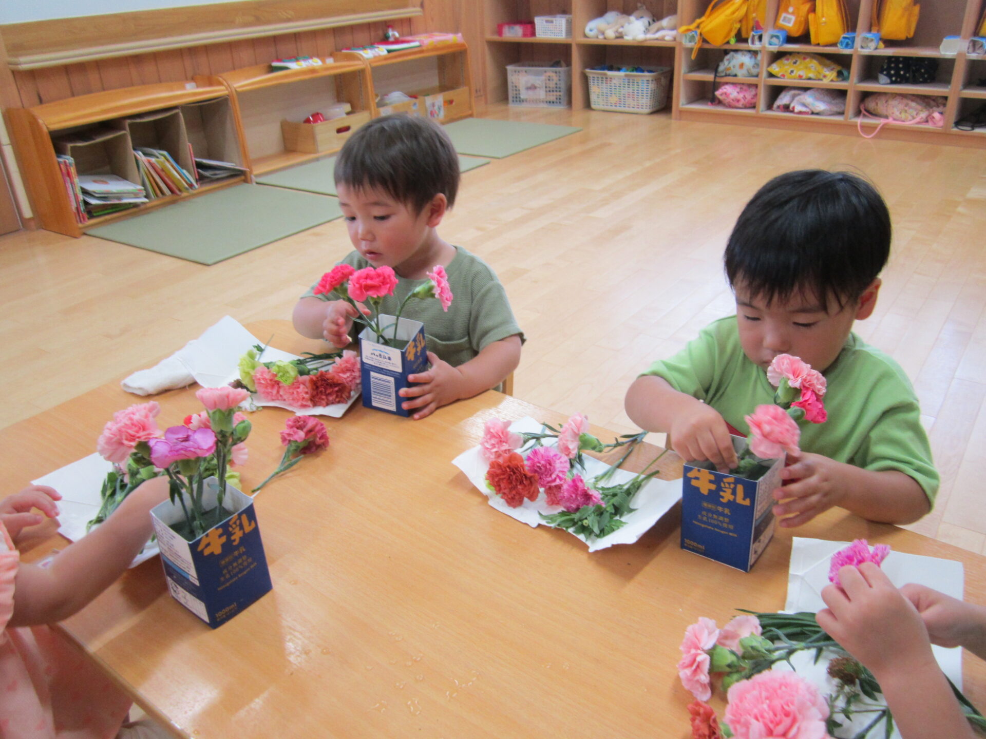 お花を前にすると大人が手を加えることがなくてもどんどん自分達で積極的になんのためらいもなく、嫌がることもなく手を動かす子ども達。