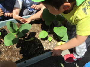 毎日外に出るたびにプランターをのぞき込む子ども達。