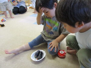 大きさや感触、重さなどいろいろなことを感じているようでした。
