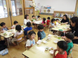 給食にいれてもらい、ナスを見つけると嬉しそうに