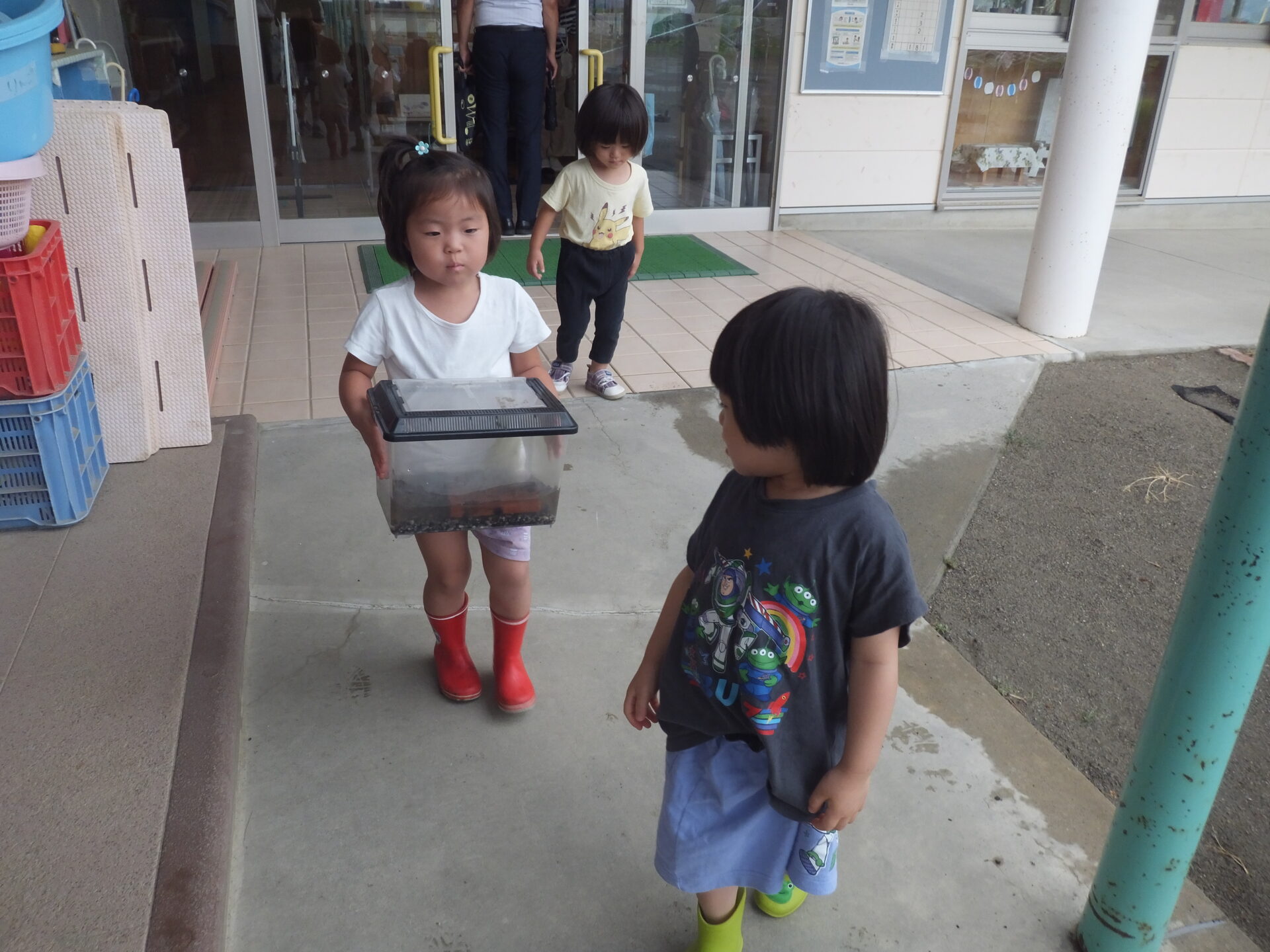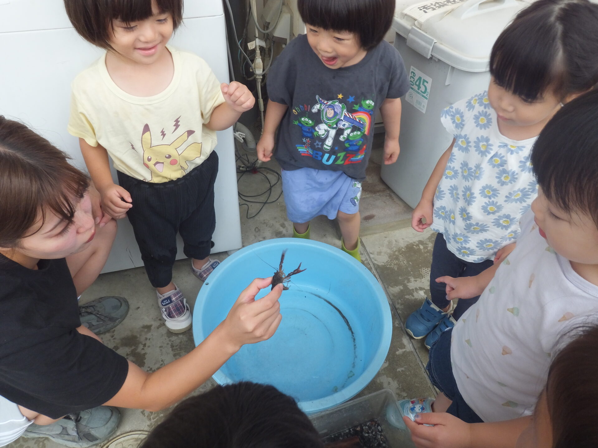 「ザリガニー!」と決まり、今日はザリガニのお世話をしました。