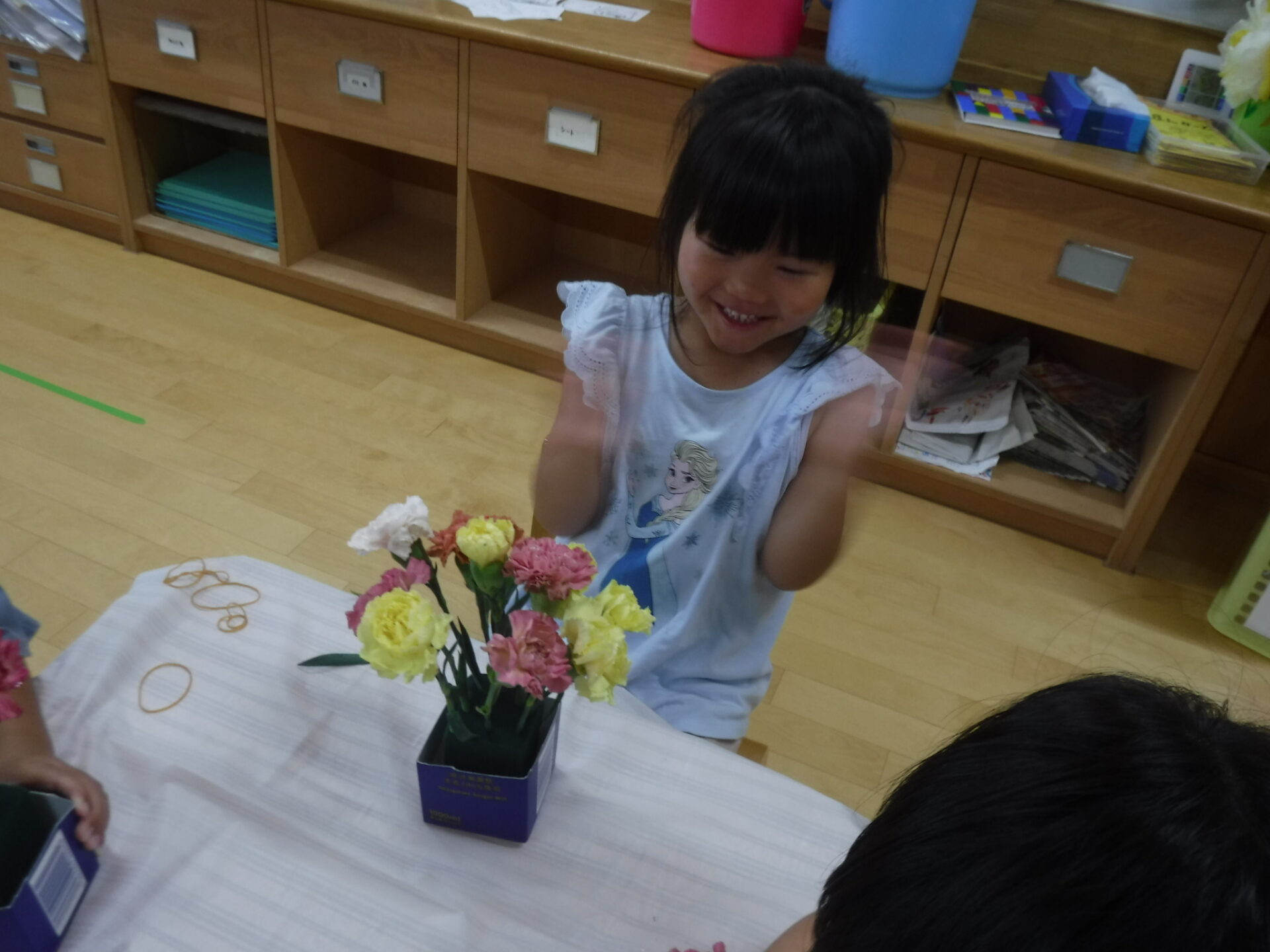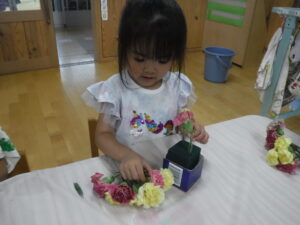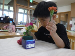 ・「先生、この緑色の(オアシス)やつを濡らさないとお花が枯れちゃうんでしょ?