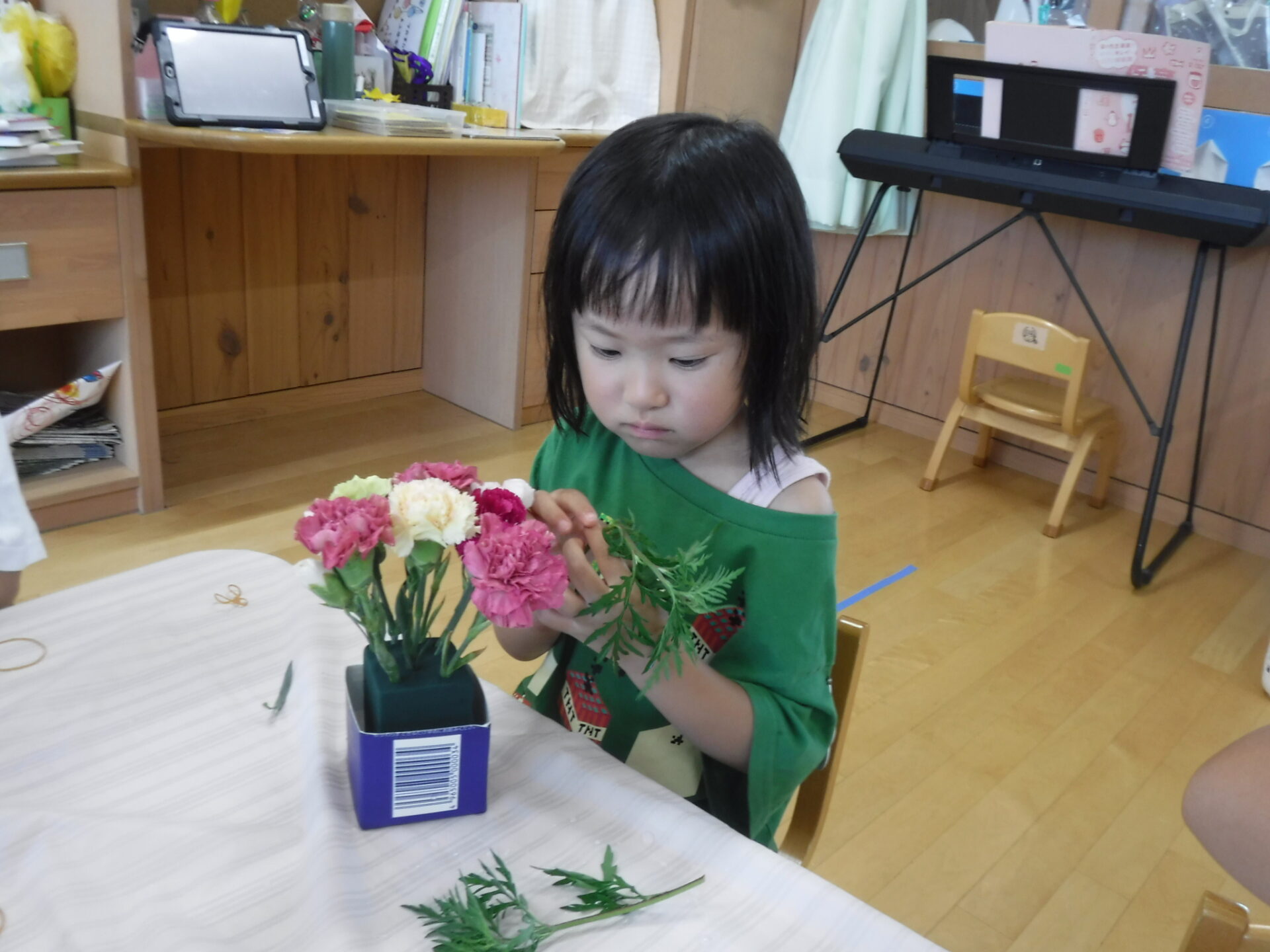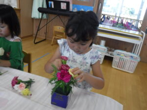 ・葉っぱがついたまま花を刺すと、刺しにくい&刺しても抜けてしまうことに気づき、