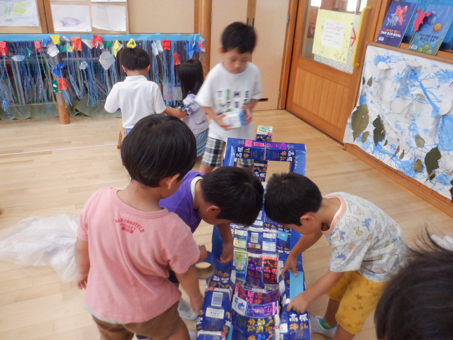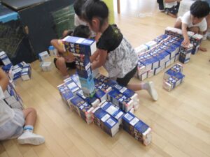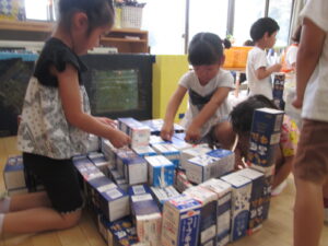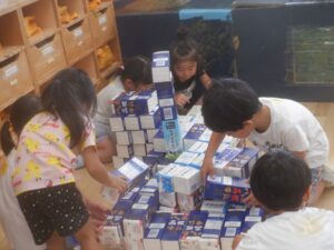 船作りは、ペットボトルと牛乳パックに分かれて作るようです。