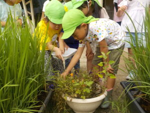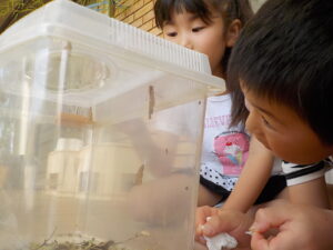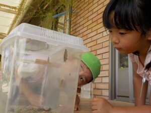 蝶々の飼育のあとはカブトムシやクワガタを飼育して、お世話をしてあげています。身近な生き物とたくさん触れ合い、生き物への親しみや好奇心をたくさん育んでいってほしいなと思います。