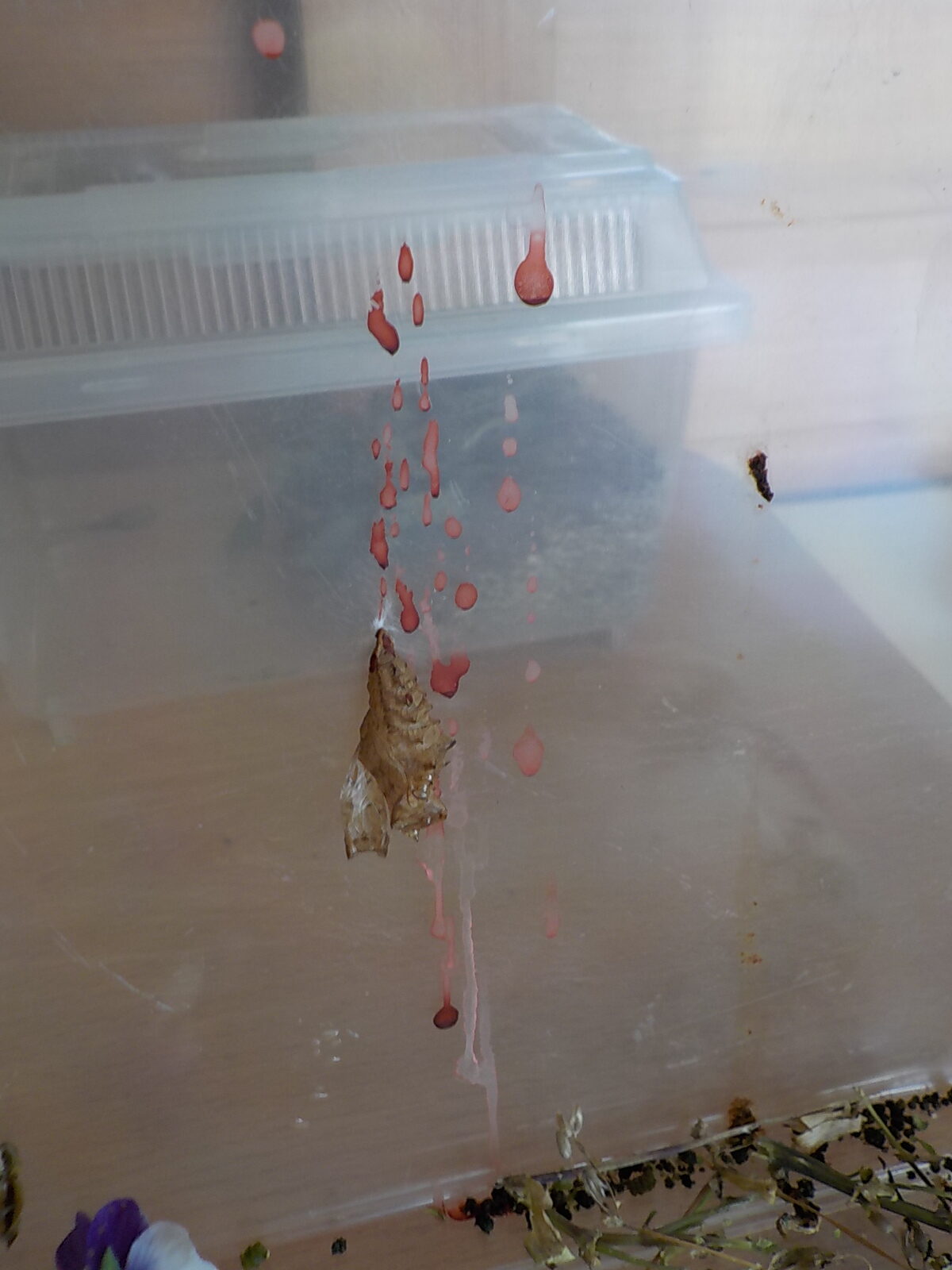 調べてみると、これは『蛹便(ようべん)』といって羽を伸ばすための体液で、余った分をお尻から出すようです。