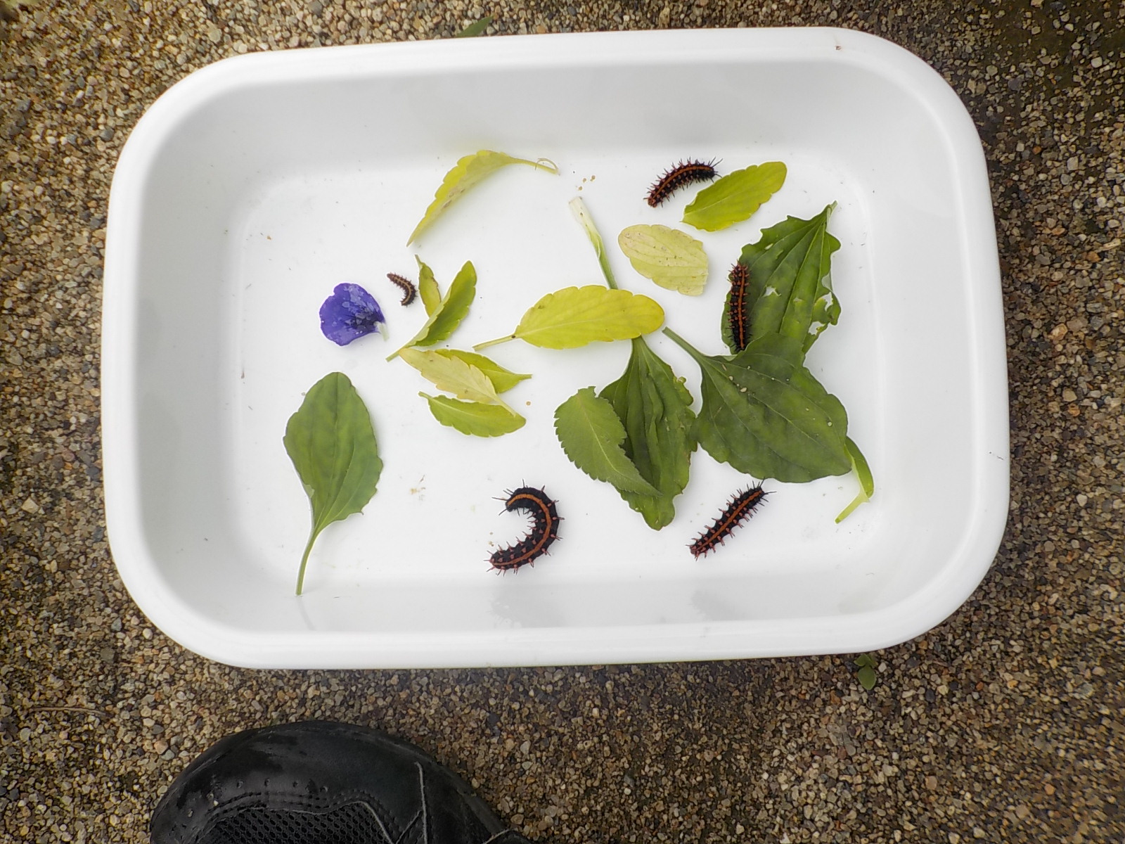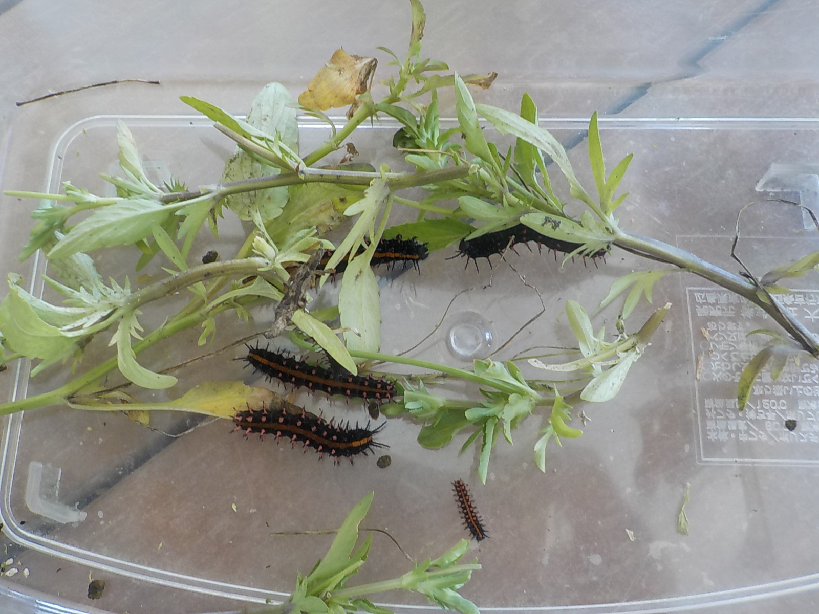 図鑑で調べると、ツマグロヒョウモンという蝶々の幼虫だとわかりました。