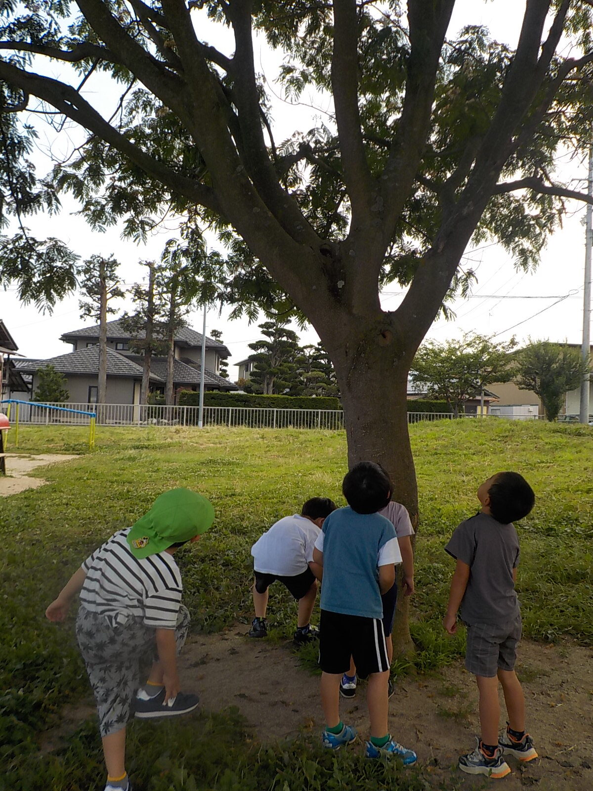 何度か落ちてしまいましたが、「がんばれー!!」と声援を送り、木の上まで行くのを見守っていました。