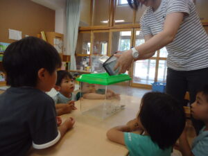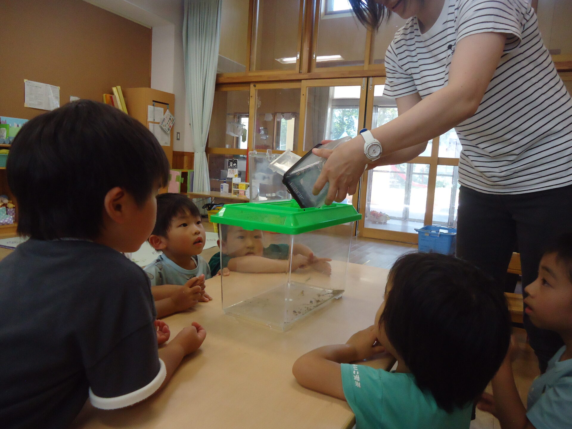 その一方、「エサを食べなかったってことは、食べたいものがここにはなかったんじゃないかな?それなら逃がしてあげた方がいいよ!」という年長児の意見に全員が納得。