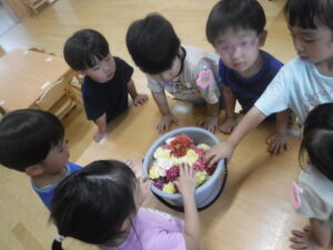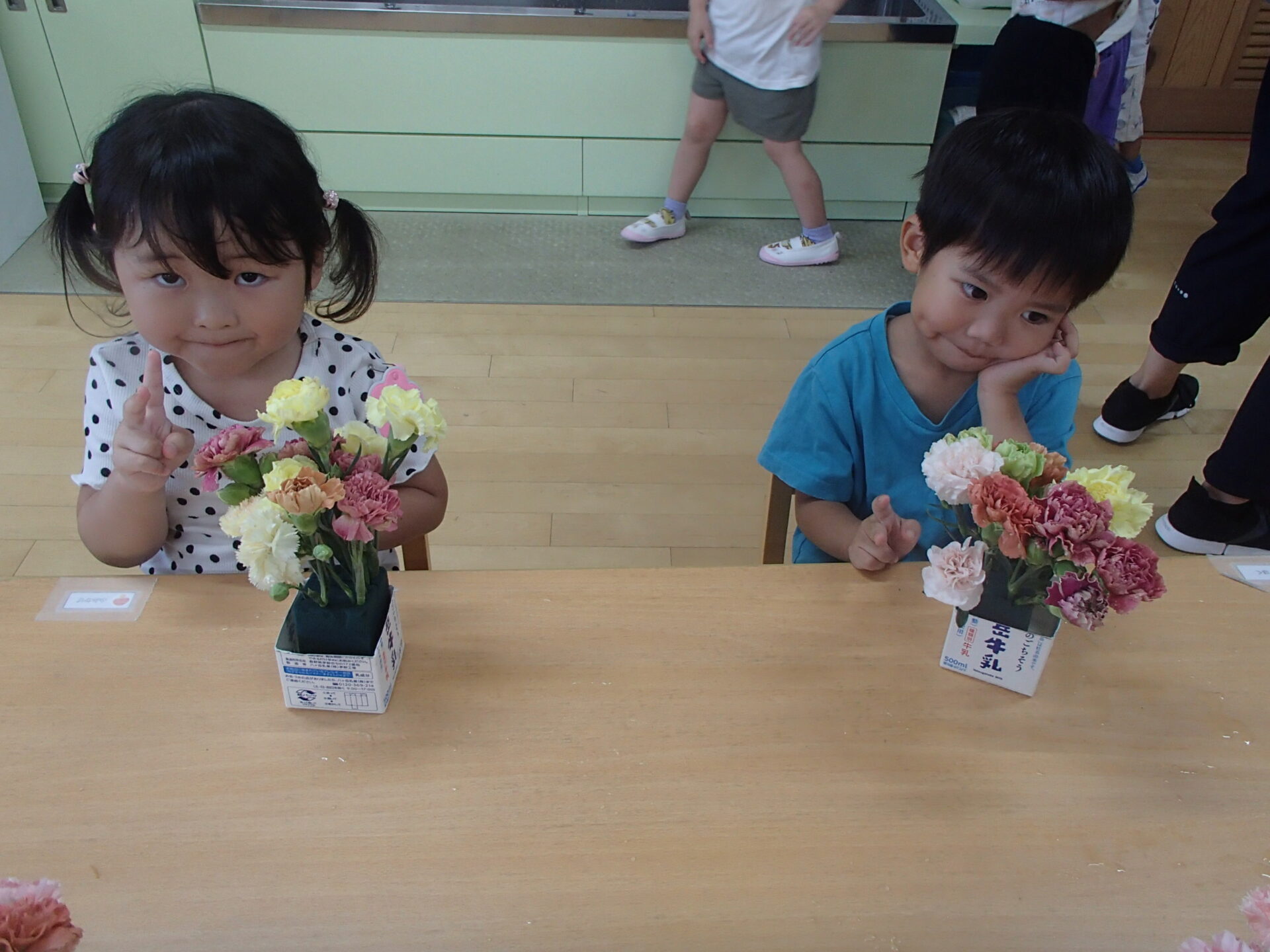 身近な地域の方々に見守られながら、様々な活動が楽しめること、身近な環境にカーネーションのお花がある事を知り、子ども達もまたお花がより身近に感じられたようです。