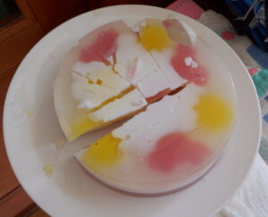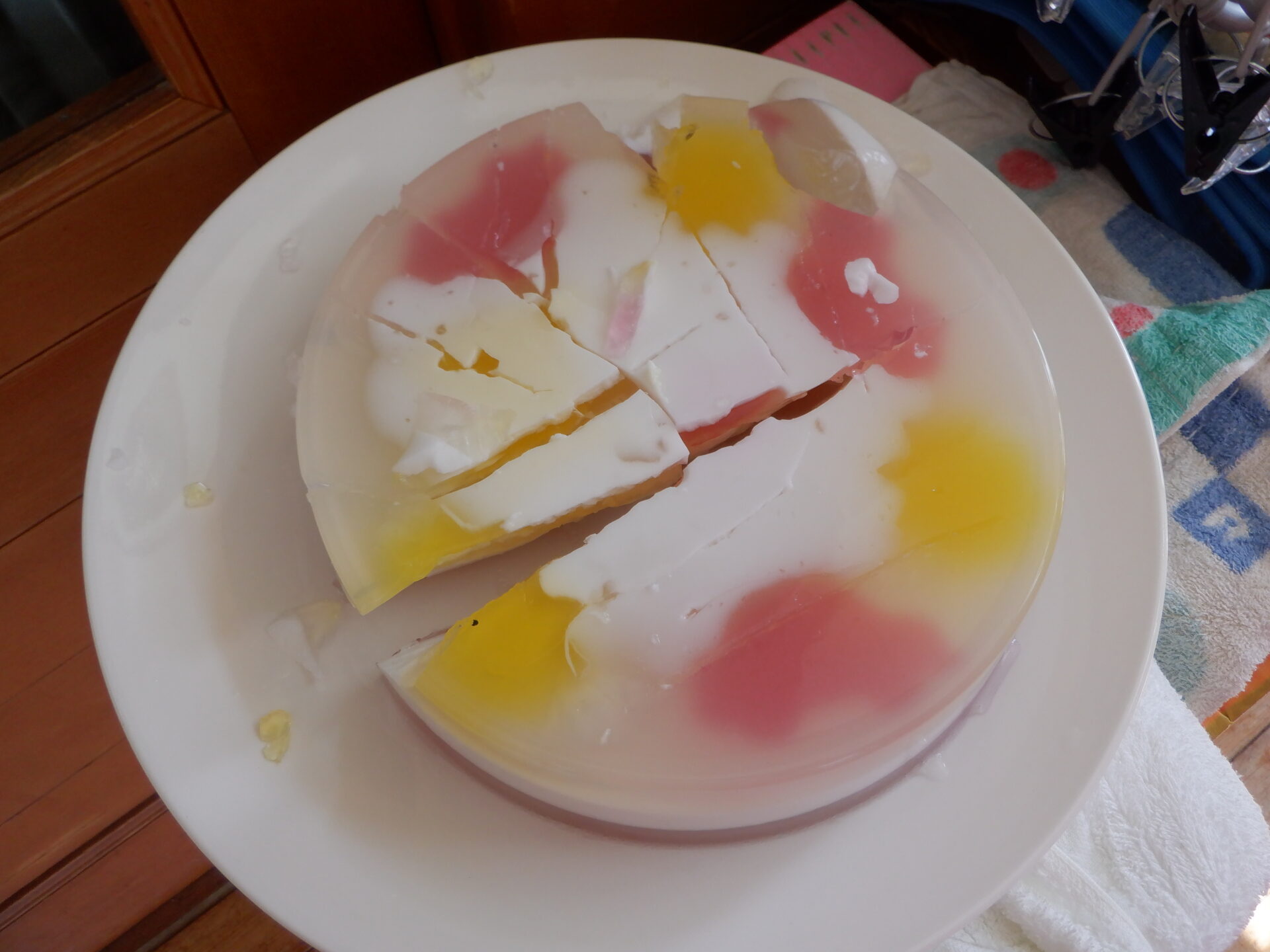 お誕生日会で寒天ケーキを使ってお祝いしました!そのあとは寒天遊び!「きれいだね~」と子どもたち。色々な硬さの寒天を楽しみました!