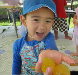最初は水がかかるのはいやだ!とやりたがらなかった子も友だちを見ているといつの間にかやりたくなってしまう子どもたち。友だちの力はすごいです!