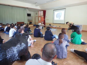 子どもも大人もじっと見入って話に耳を傾けていました。