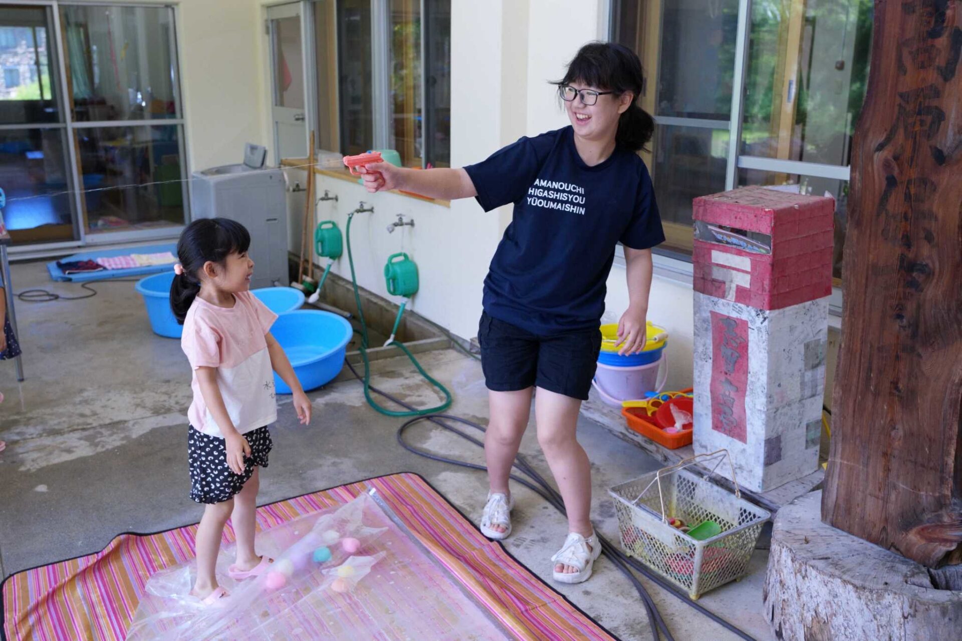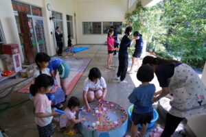 懐かしい保育園で水遊びも盛り上がりましたよ